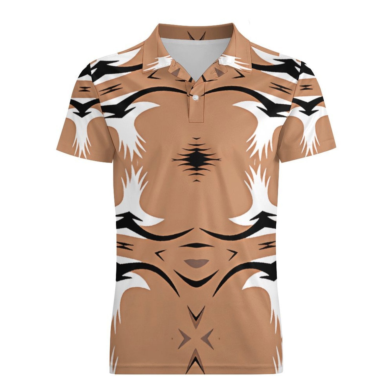 Men's Brown Tribal Wave Pattern All-Over Print Premium Ice Silk Polo Shirt