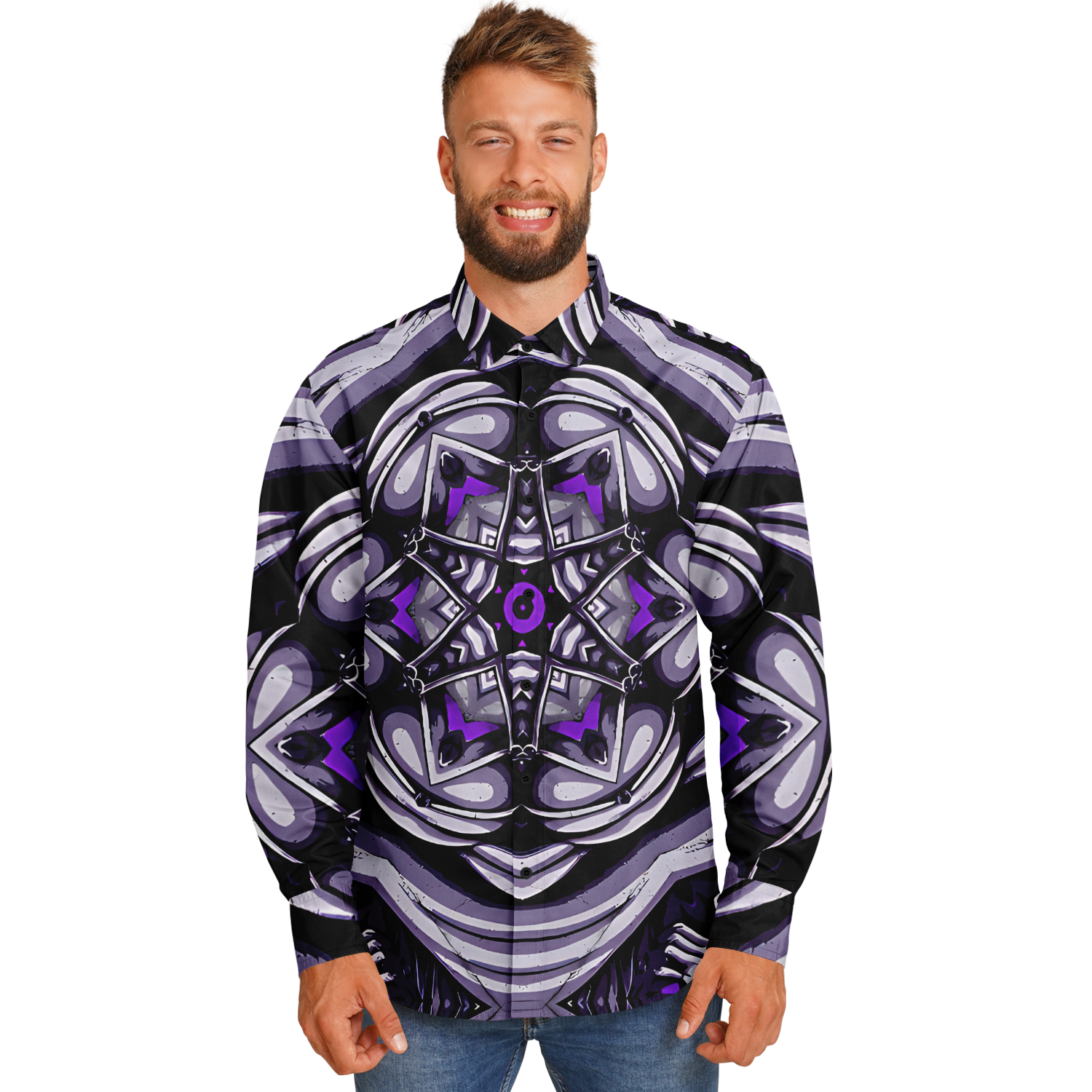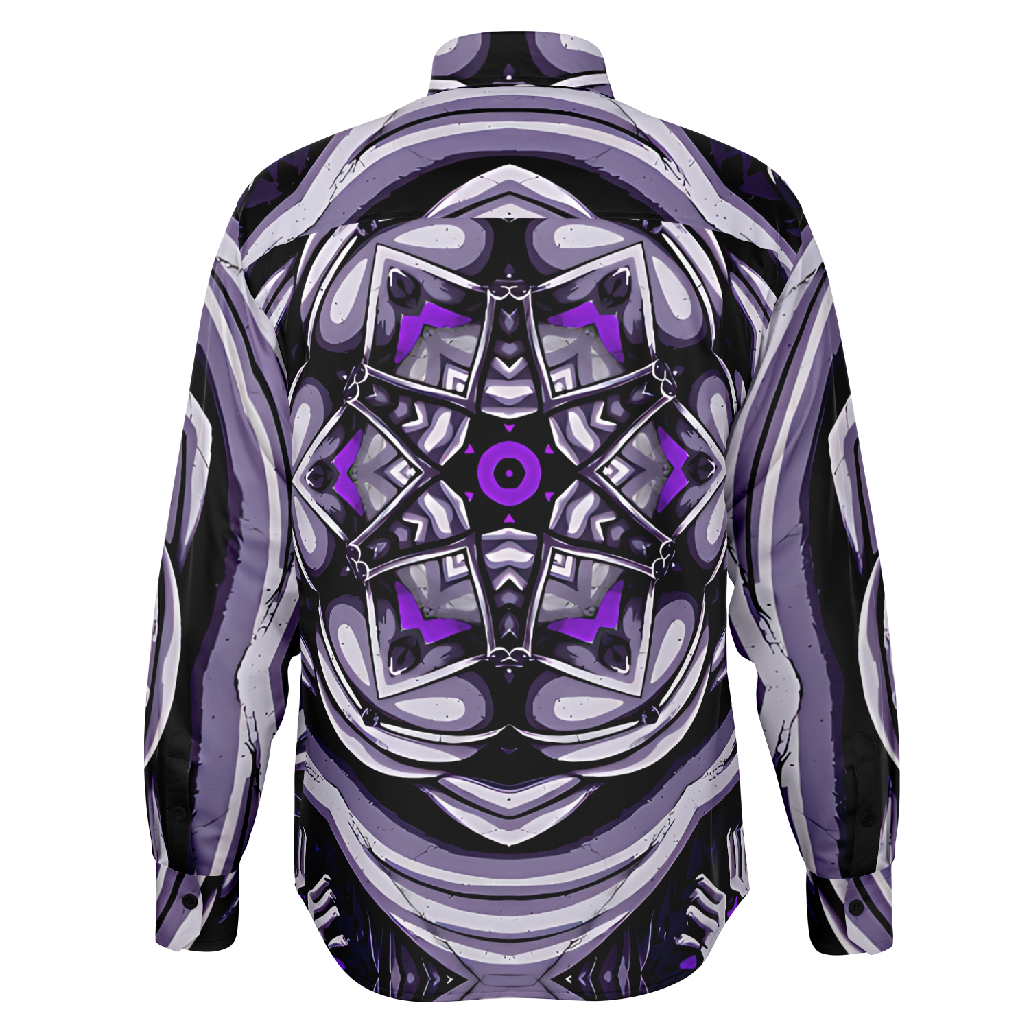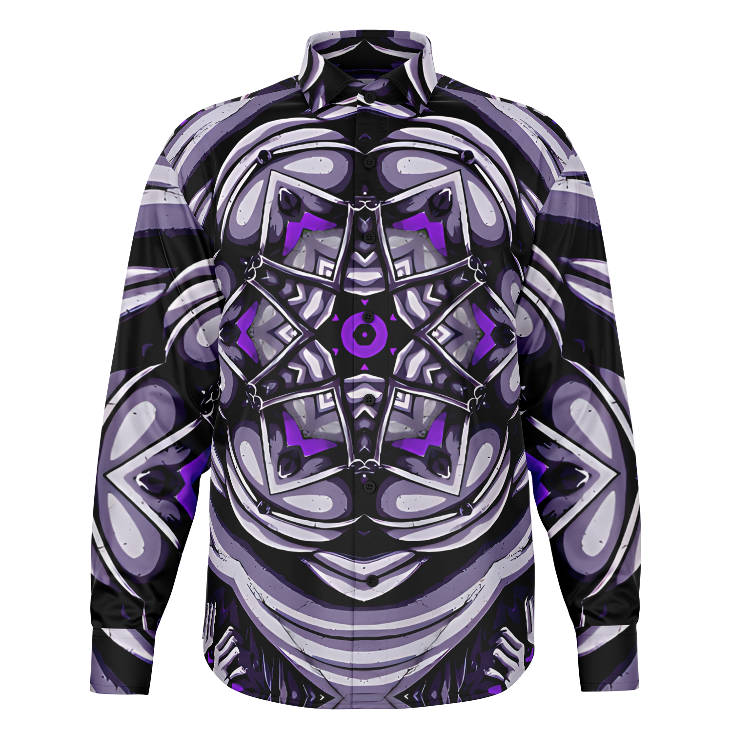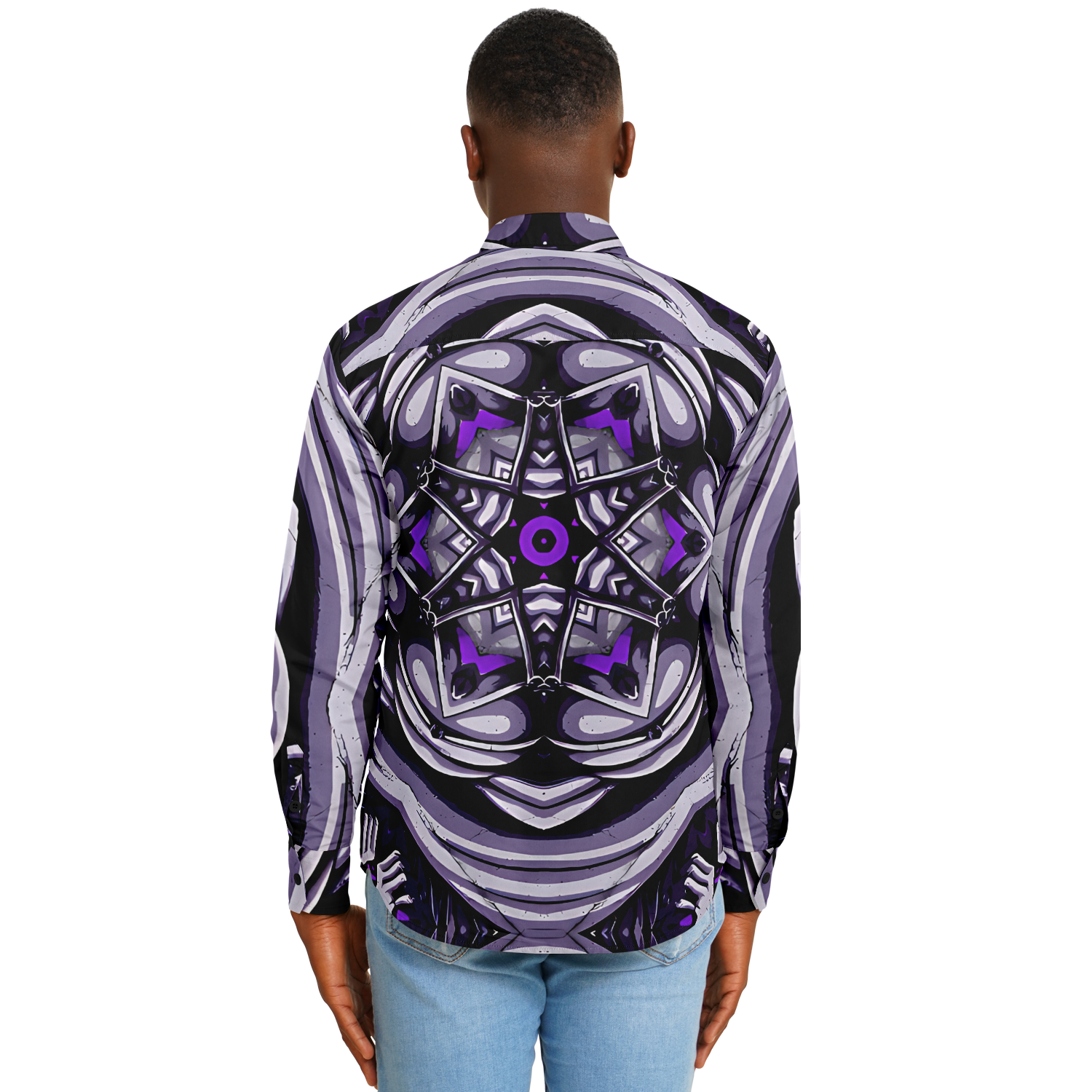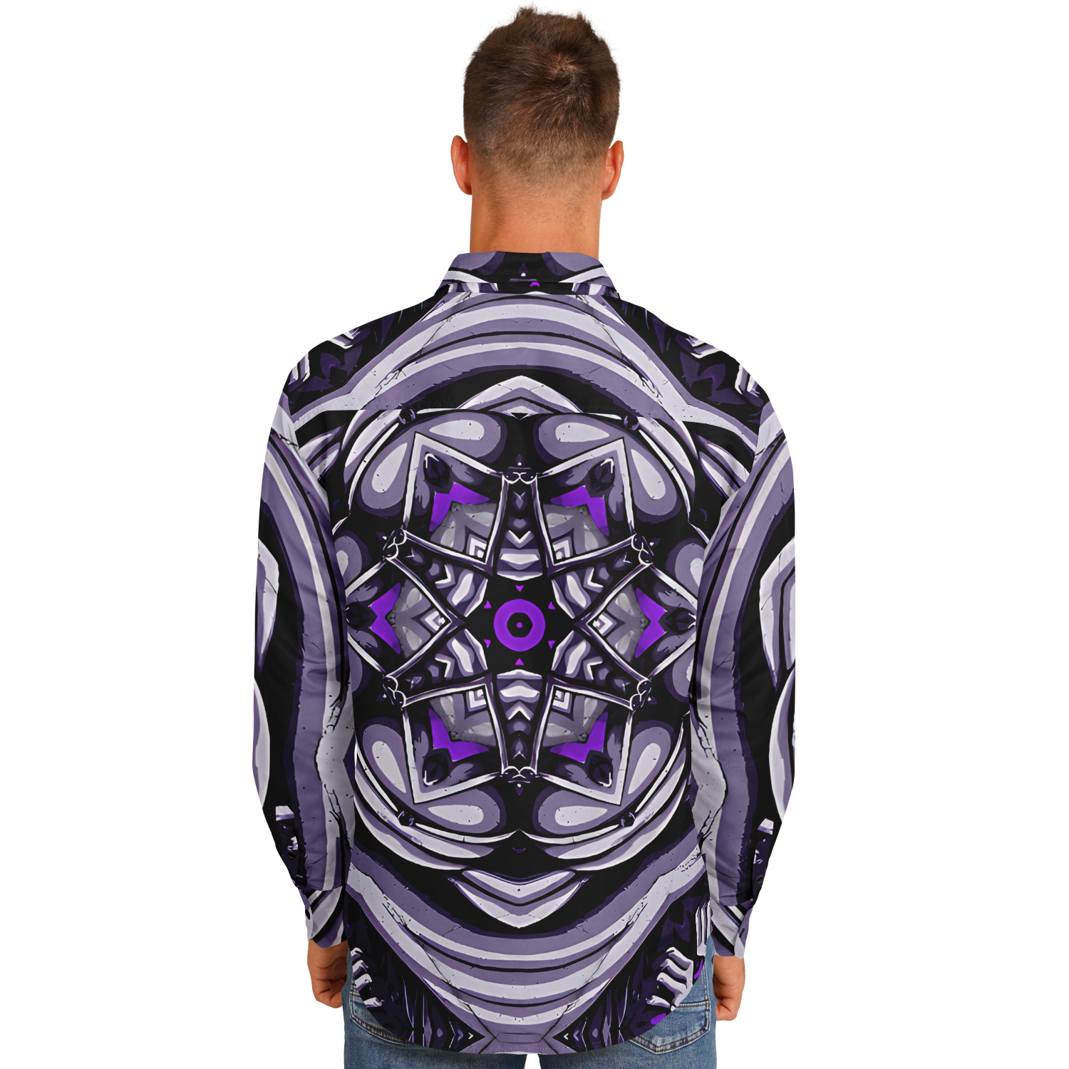 Men's Kaleidoscope Purple Pattern Spread Collar Long Sleeve Button-Down All Over Print Shirt.