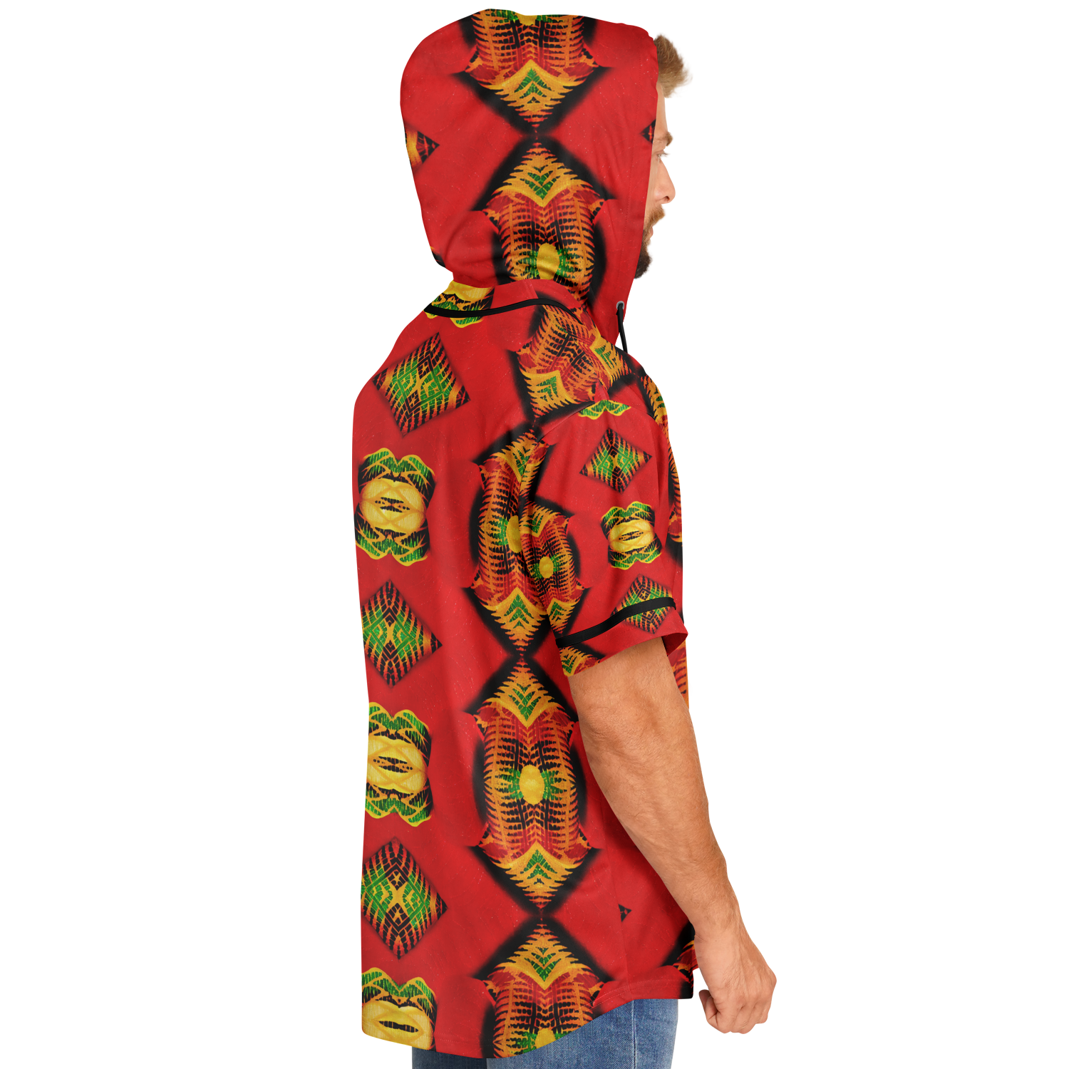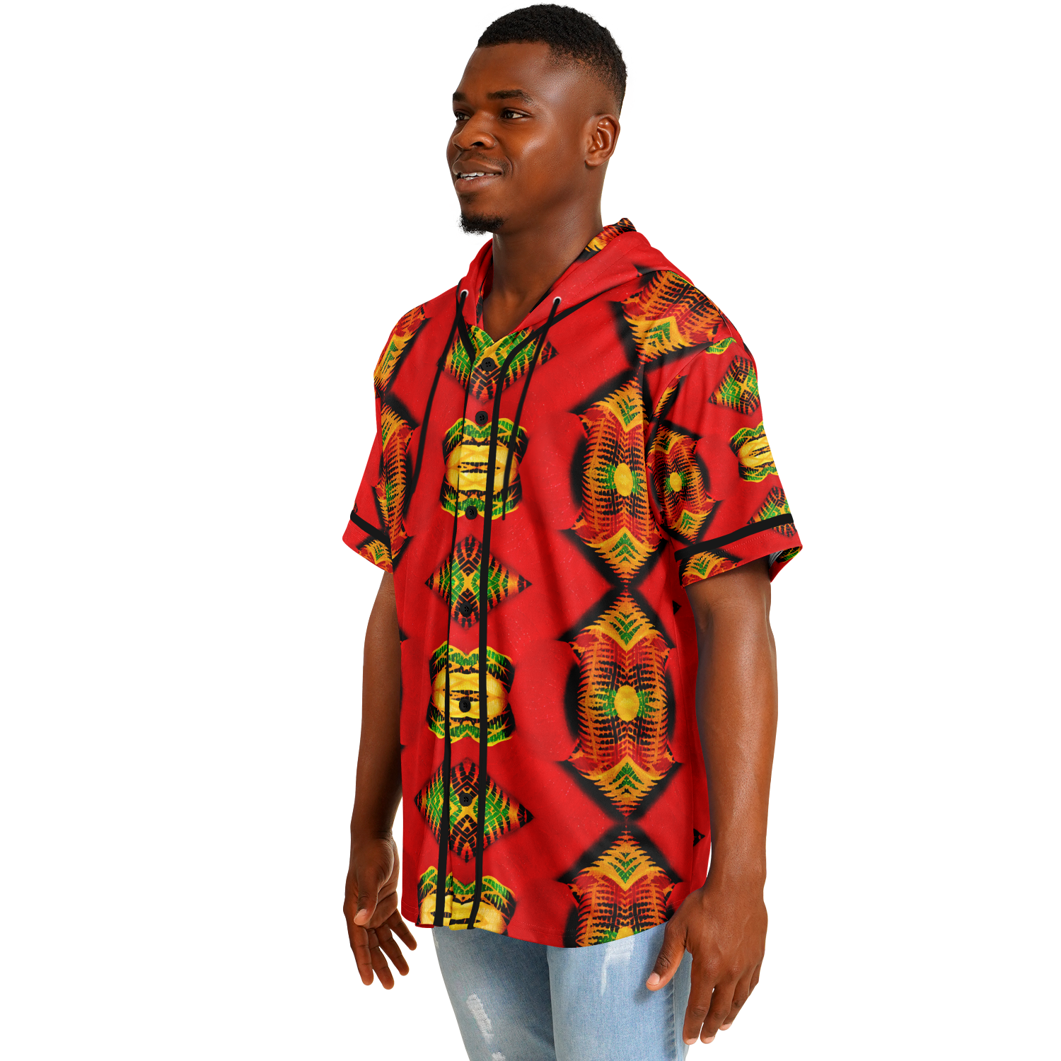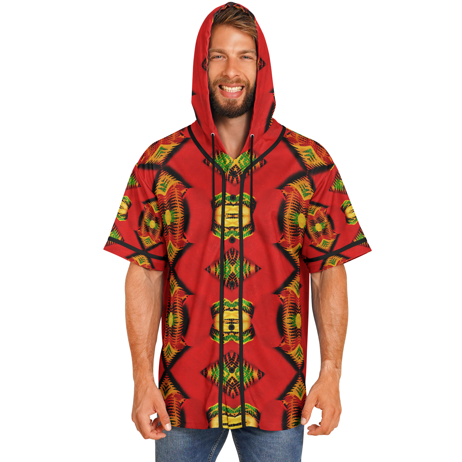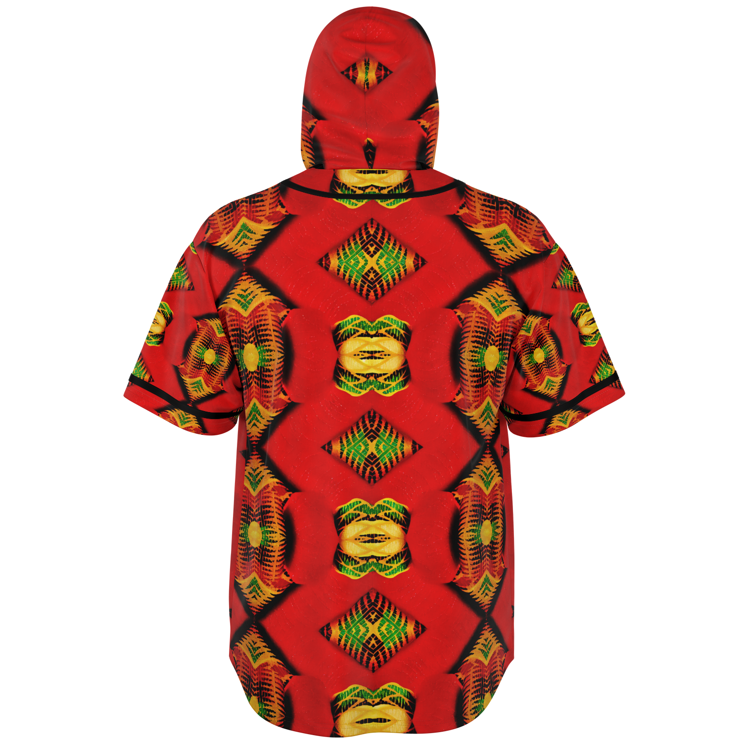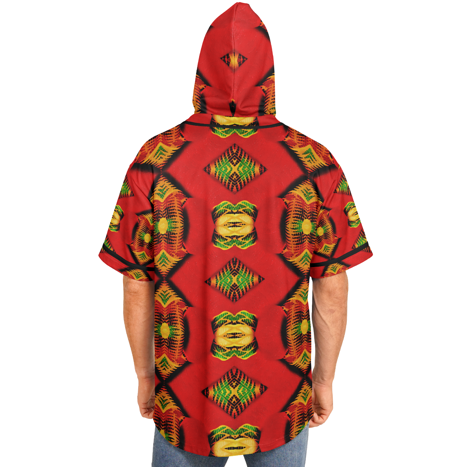 Men's Red Bold Tribal All-Over Print Hooded Baseball Jersey
