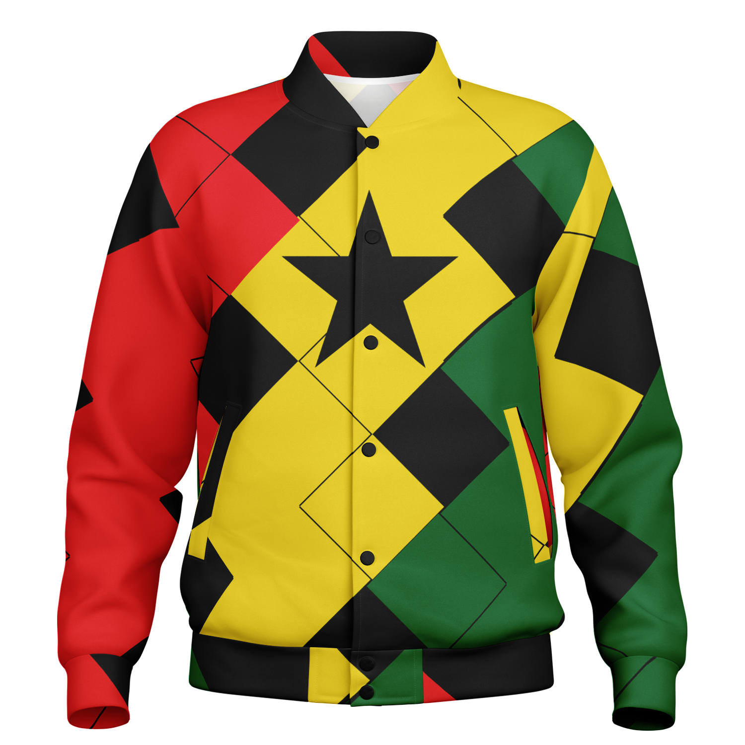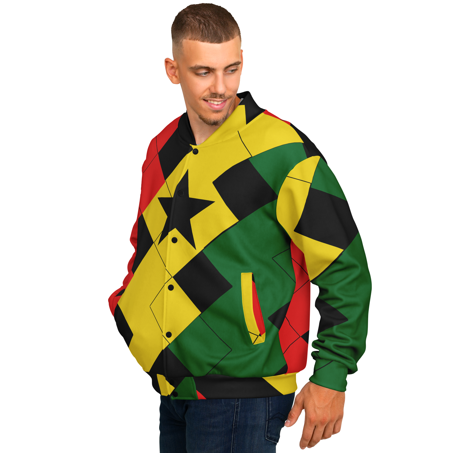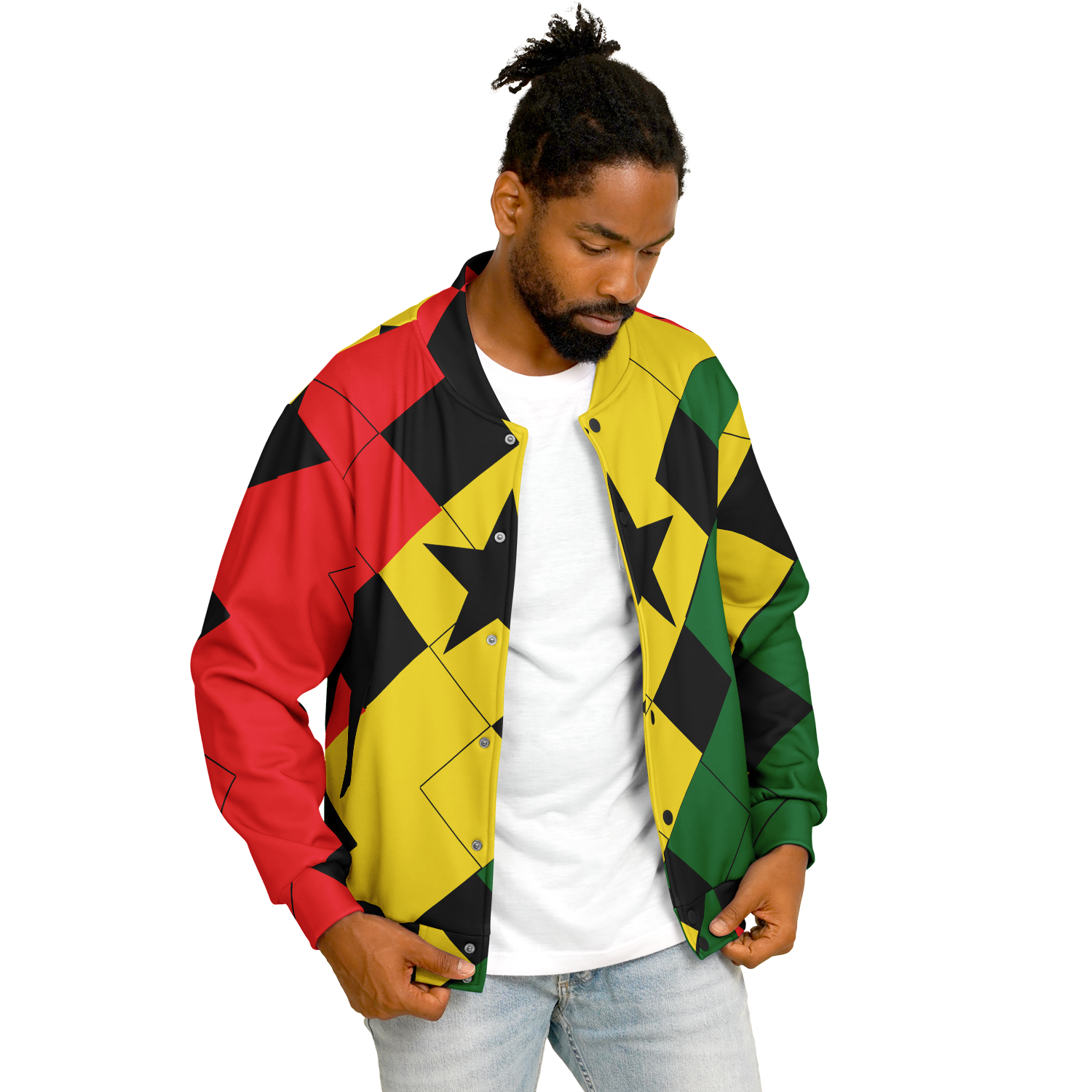 Men's Red Yellow Green and Black Stars Baseball Jacket