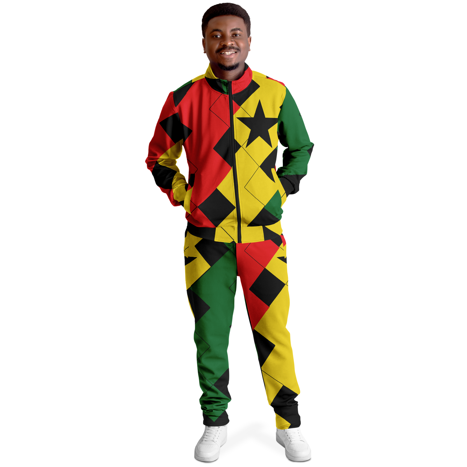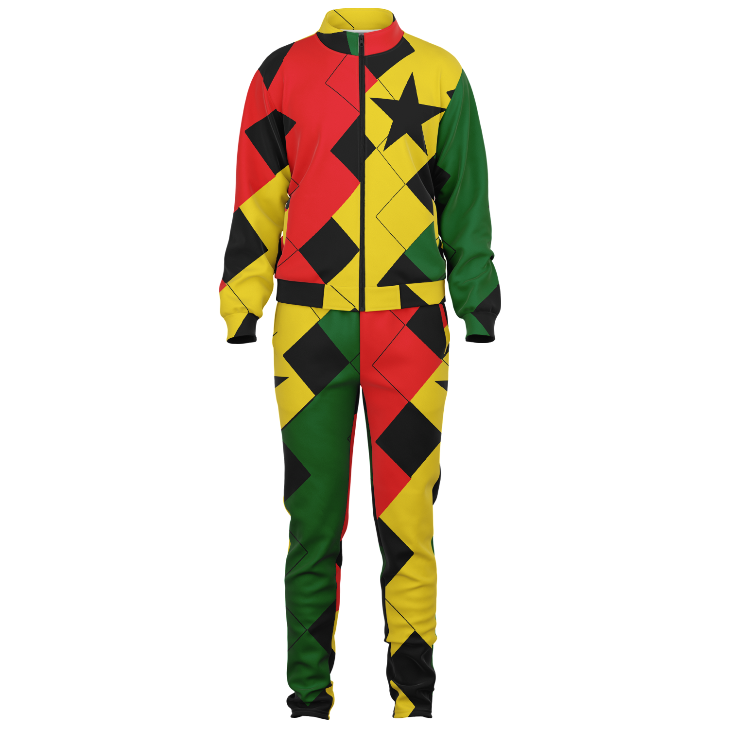 Men's Red Yellow Green and Black Stars Track Jacket and Pants