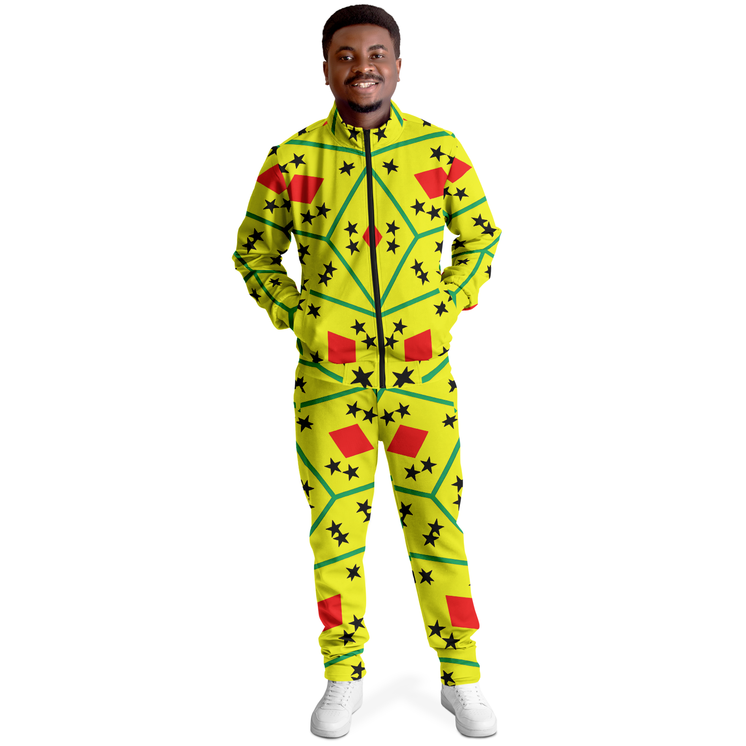 Men's Red Yellow Green Black Stars Track Jacket and Pants