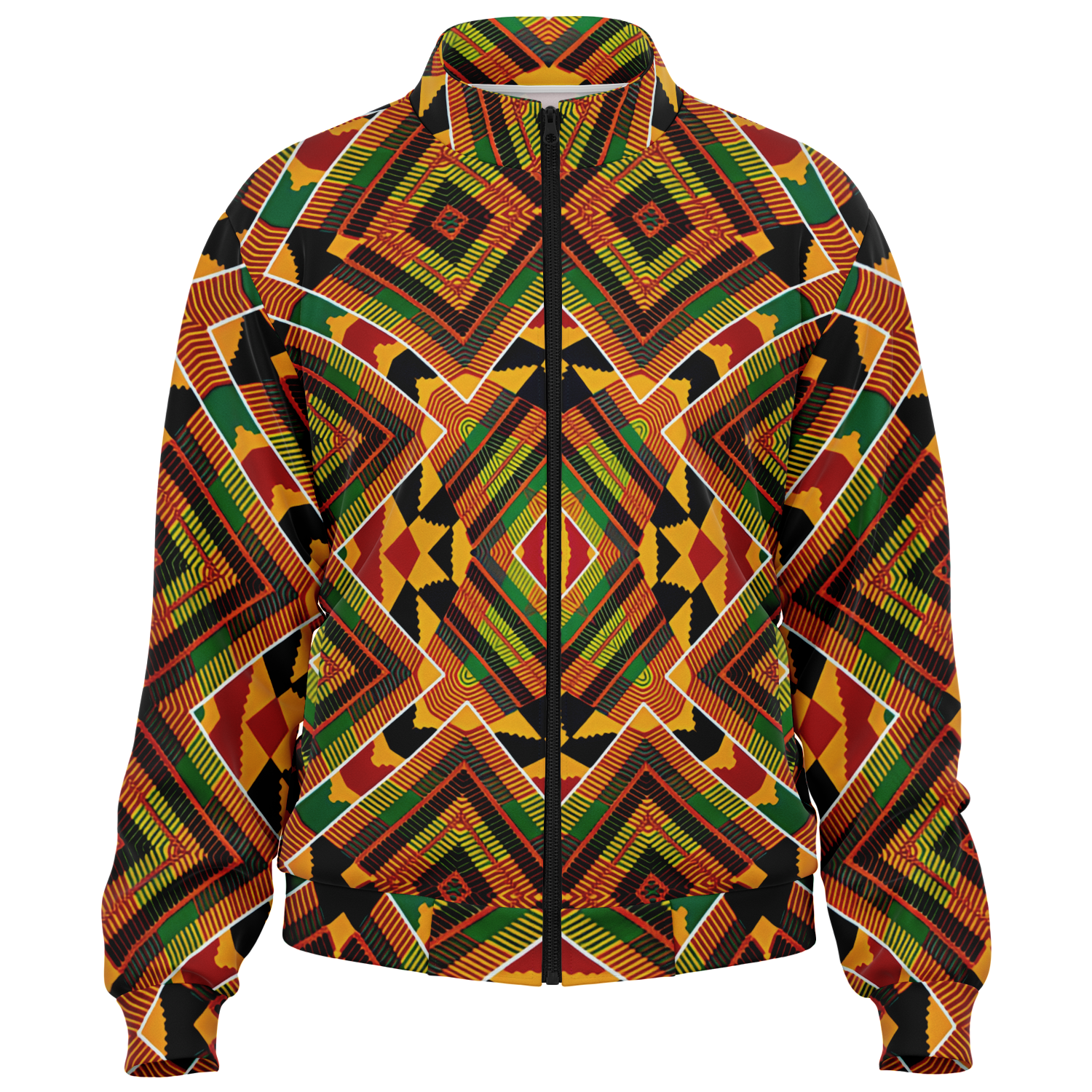 Presenting our sustainable track jacket, crafted from 95% recycled polyester and 5% spandex. With its smooth, tight-knit surface, it perfectly showcases vibrant prints and colors, while the inner surface ensures comfort for the wearer.
