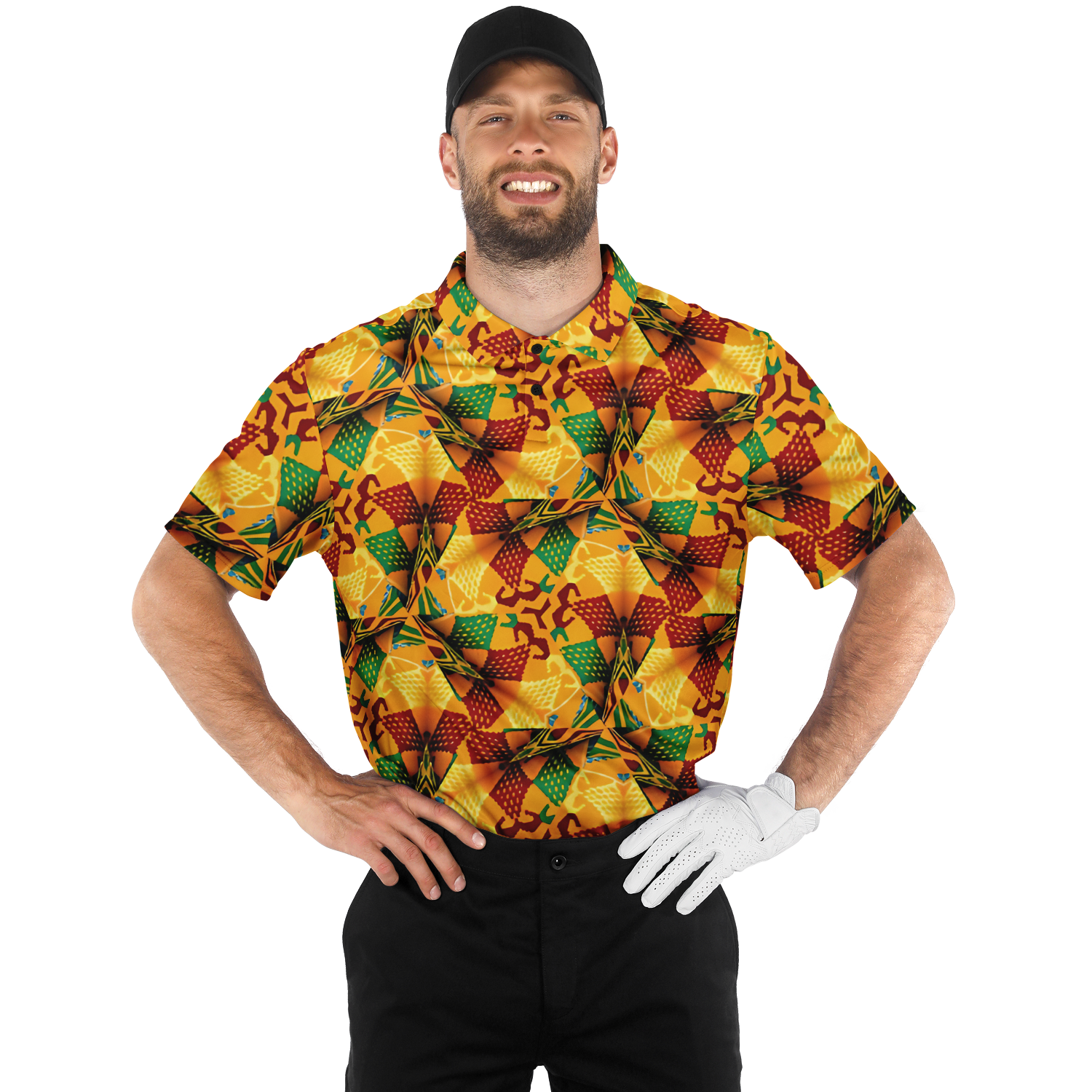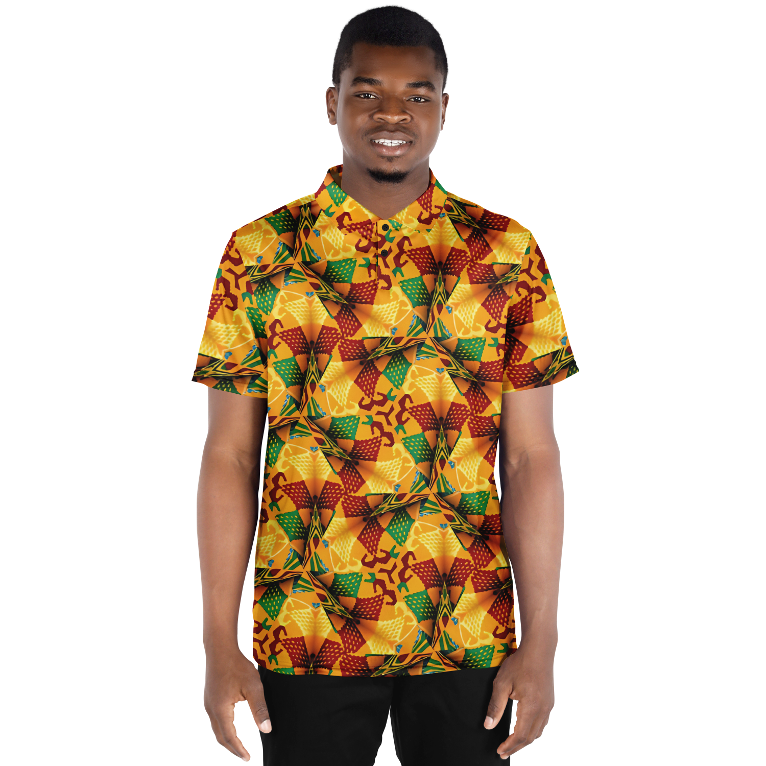 Men's Abstract Symmetry Pattern Polyester Blade Collar Polo Shirt