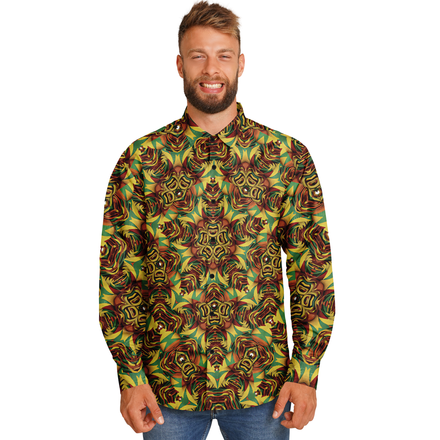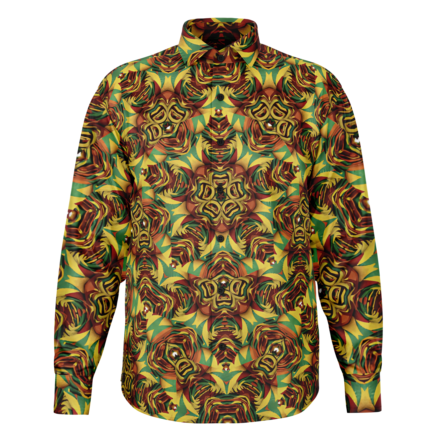 Men's Vibrant Geometric Pattern Spread Collar Long Sleeve Button-Down All Over Print Shirt.