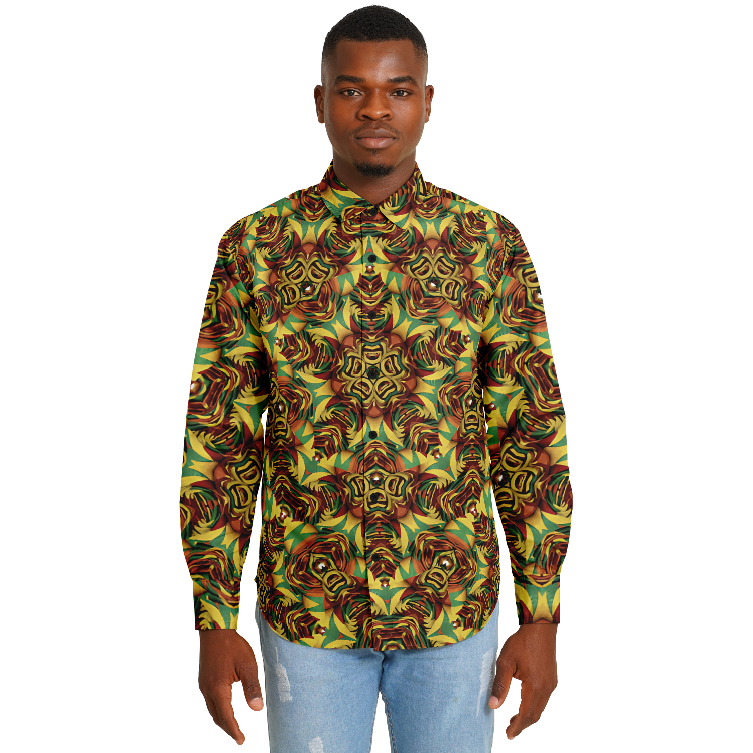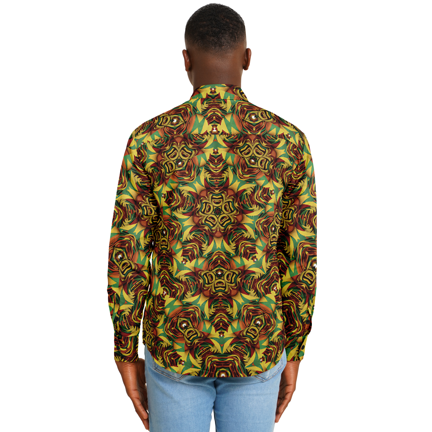 Men Bold Green, Red & Gold African Kente-Inspired Pattern All-Over Print Tee
