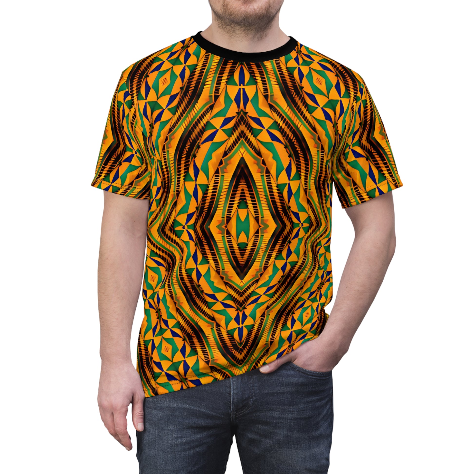 Men's Bold African Kente Inspired Pattern All-Over Print Tee