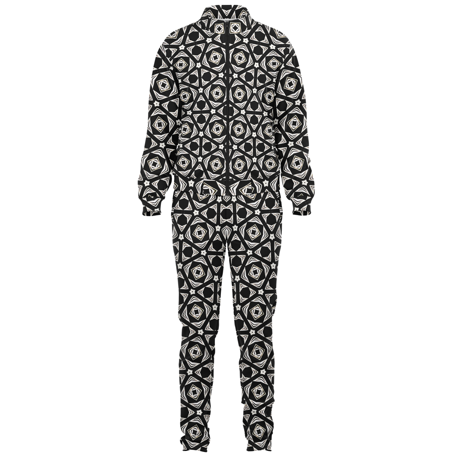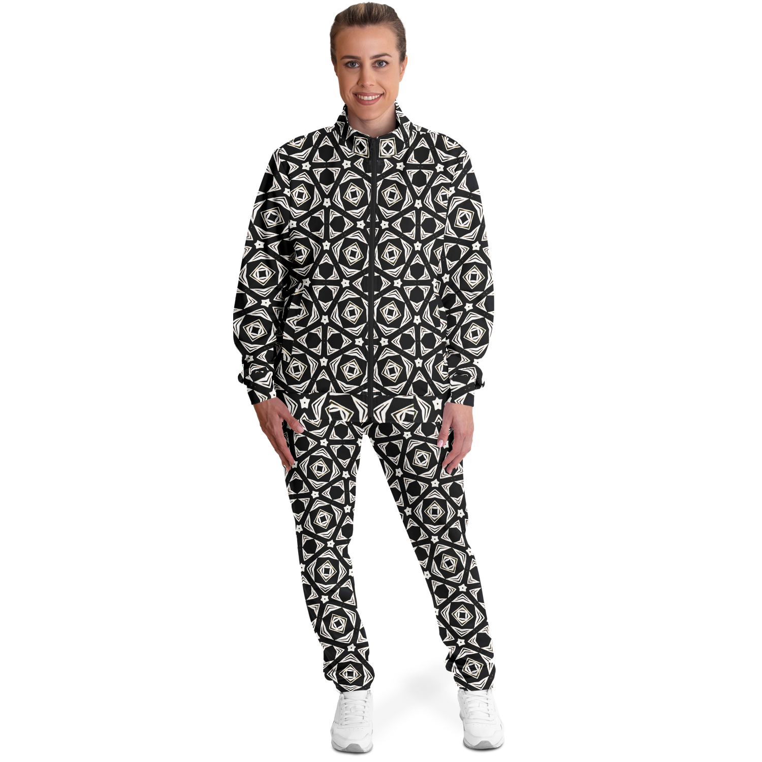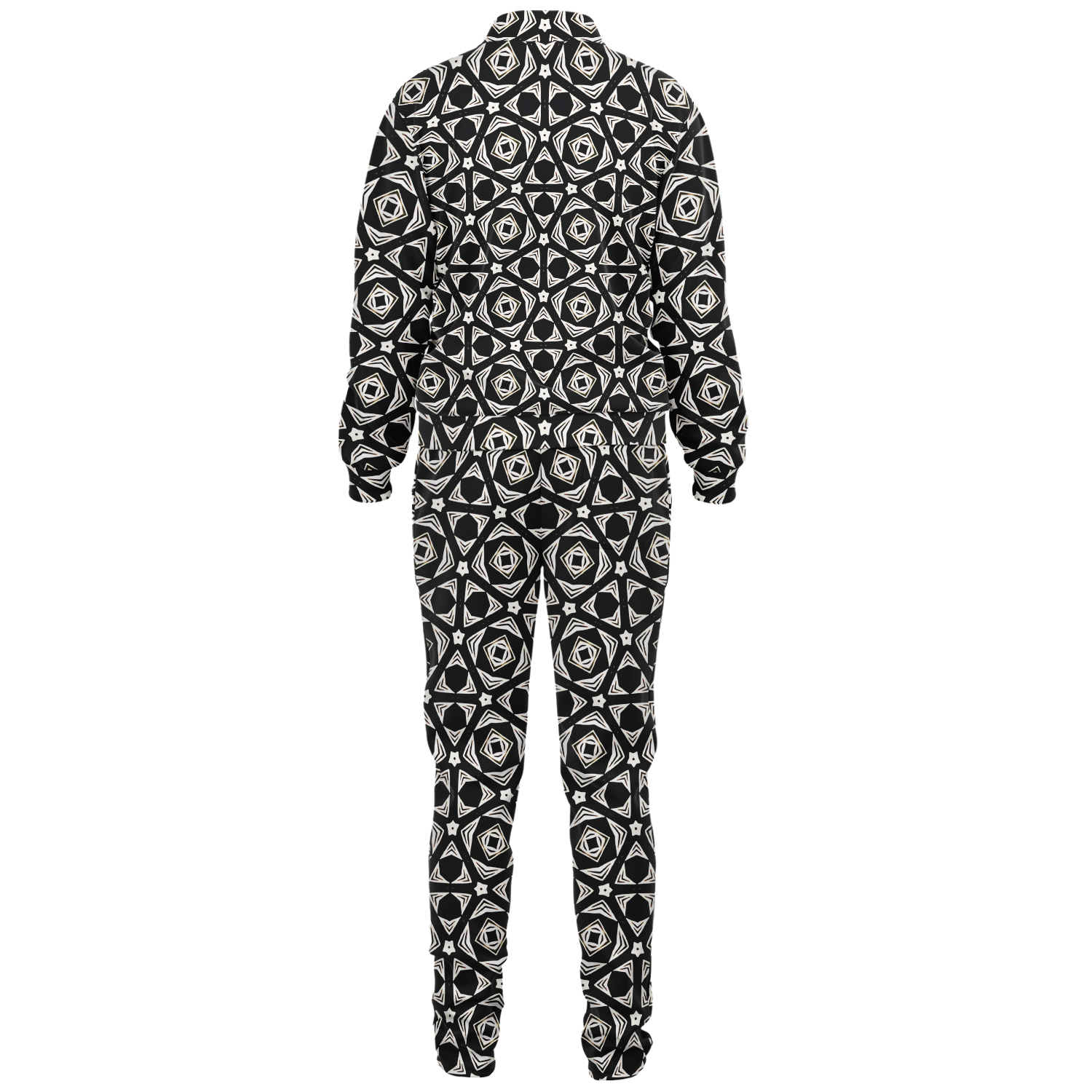 Women's Black Geometric Pattern Track Jacket and Pants