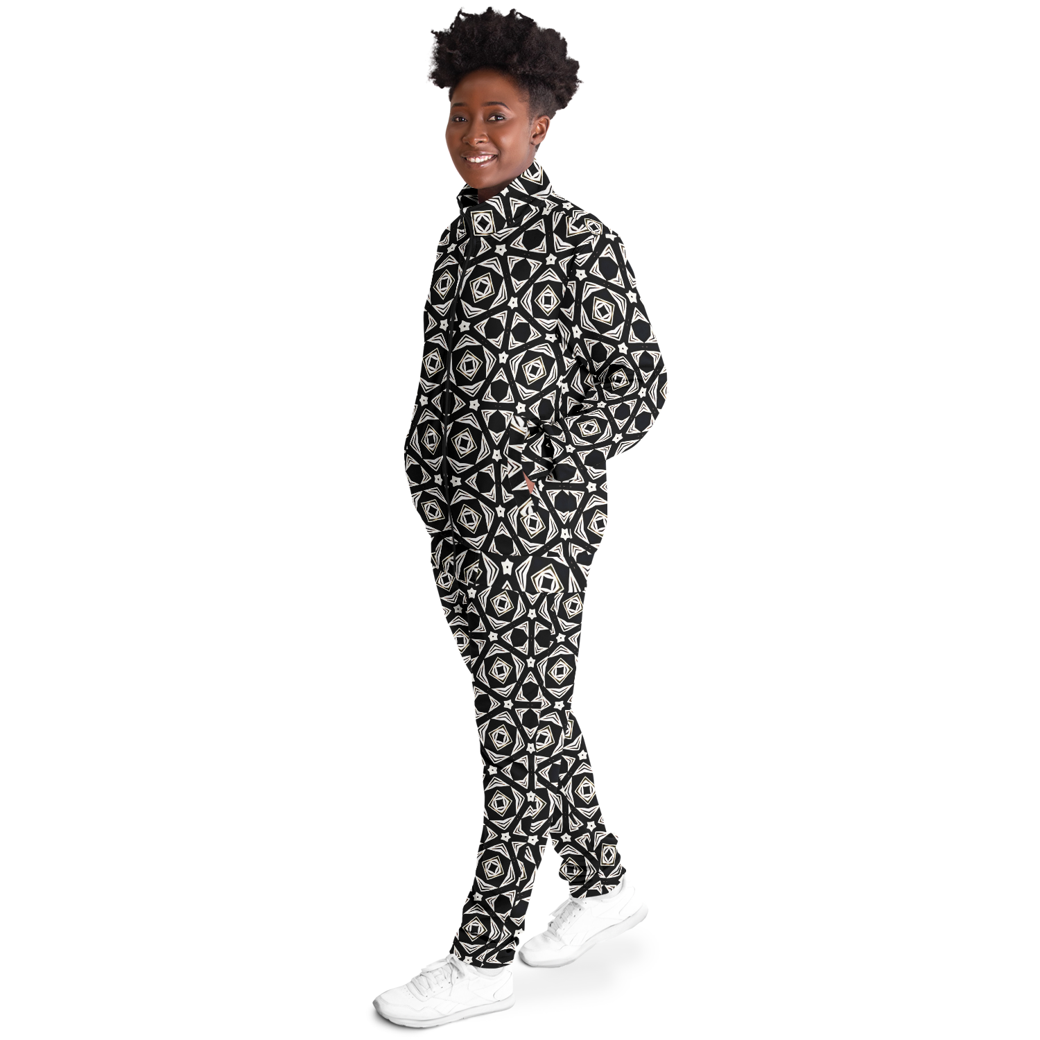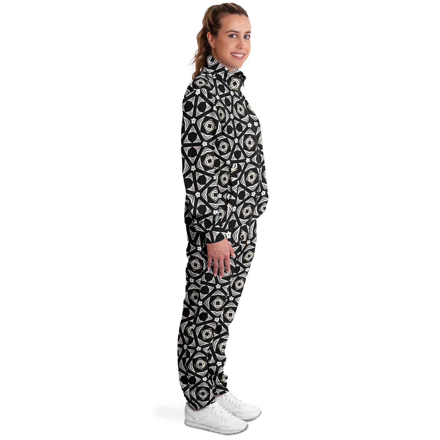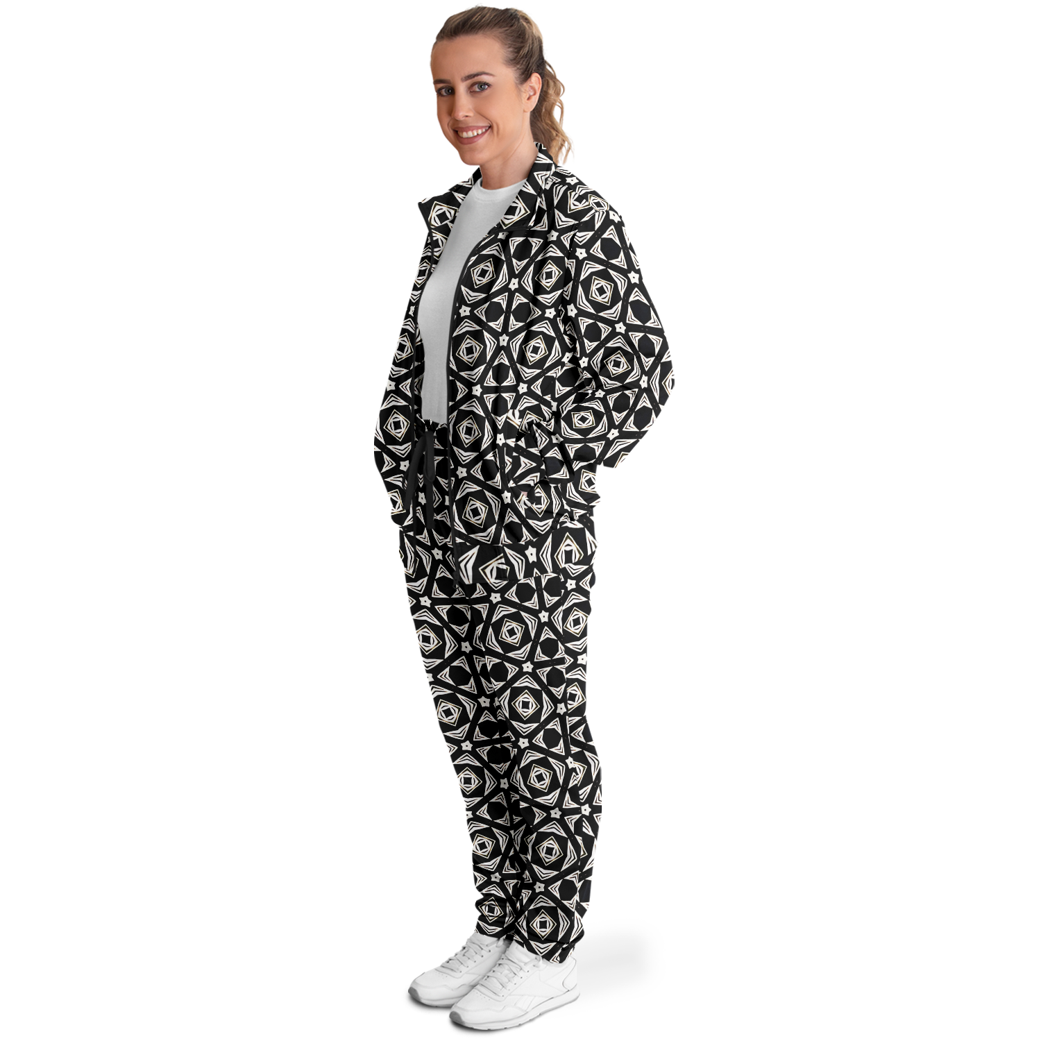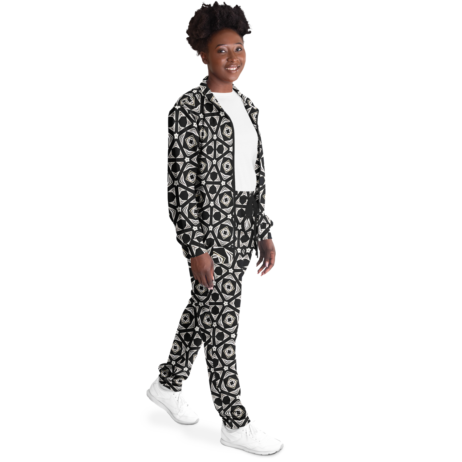 Women's Black Geometric Pattern Track Jacket and Pants