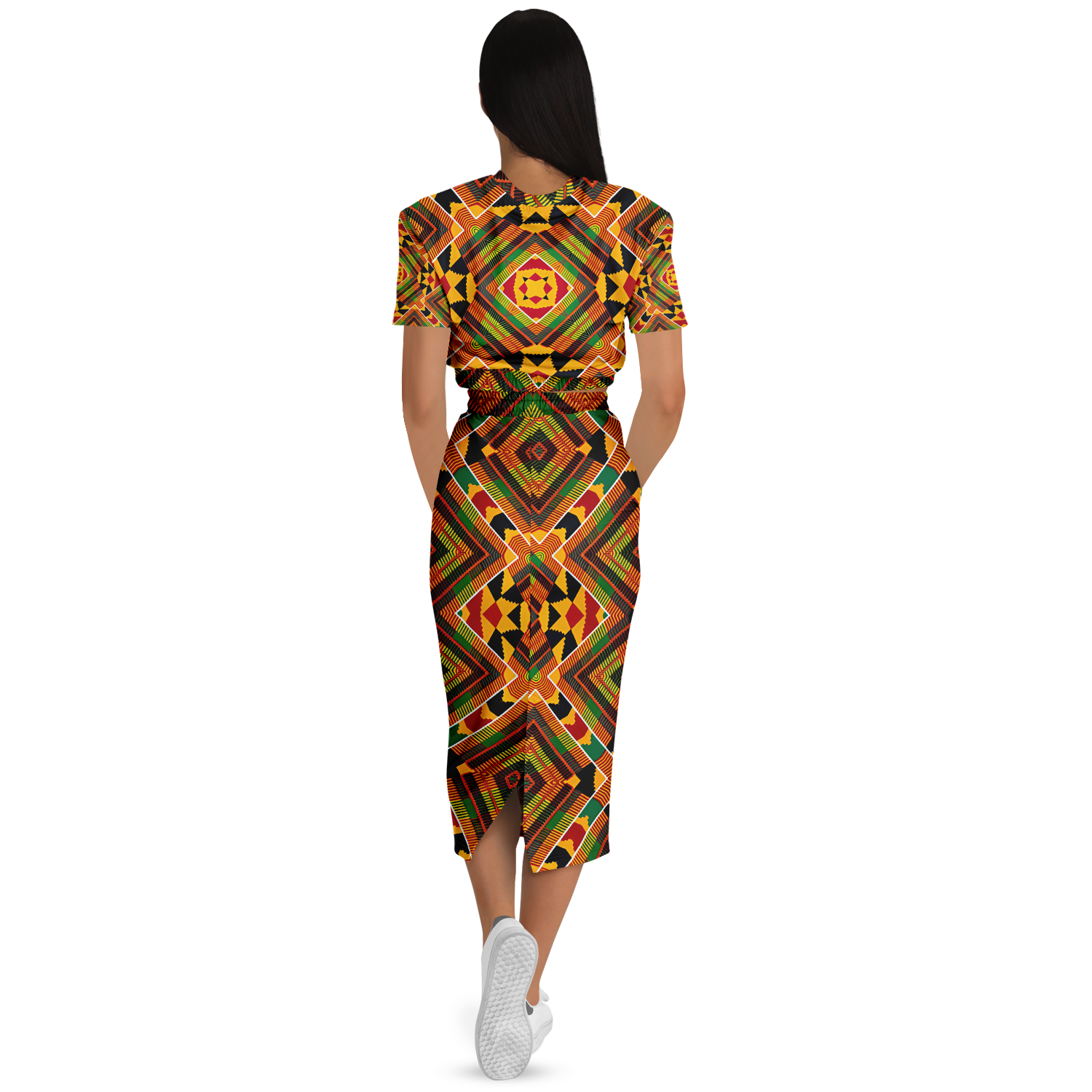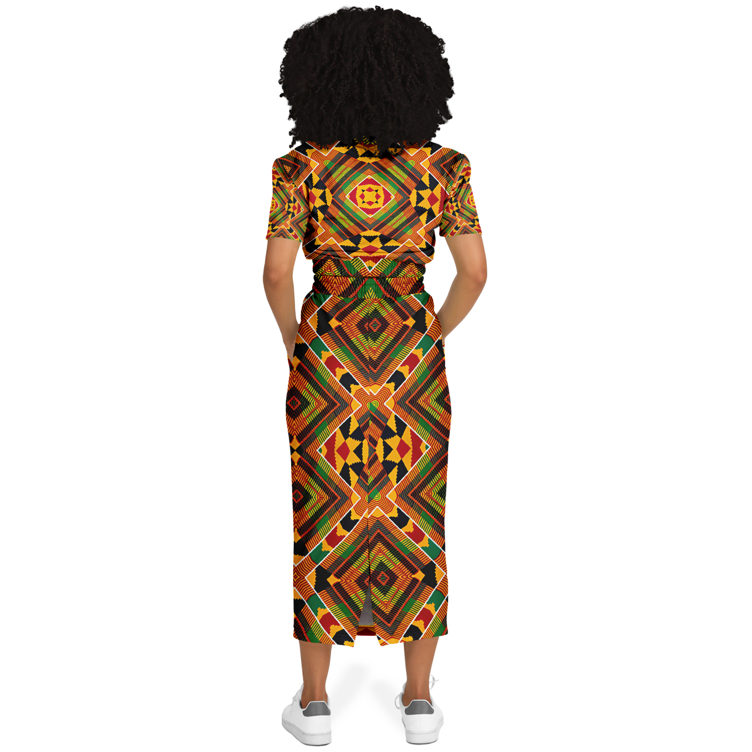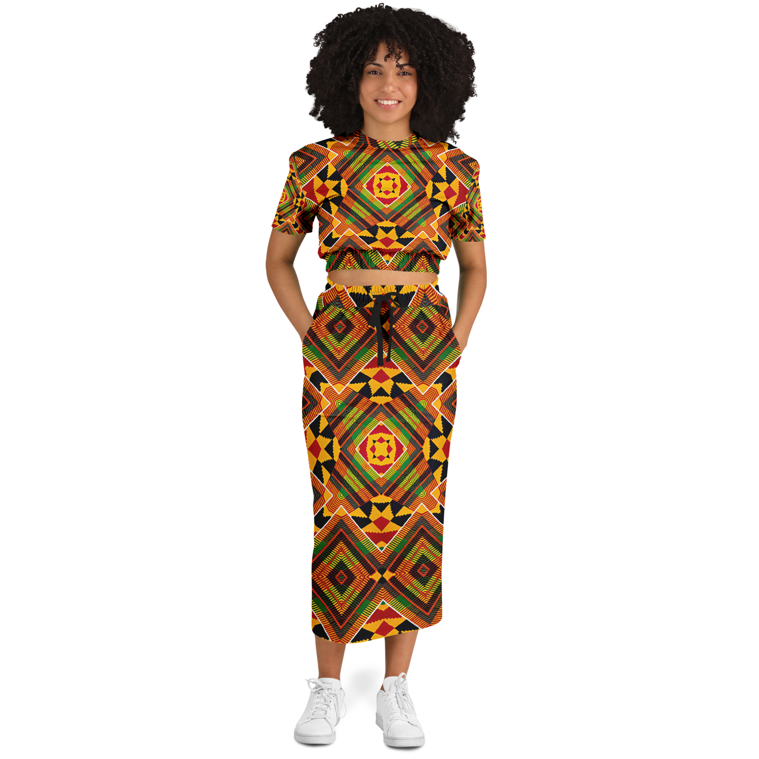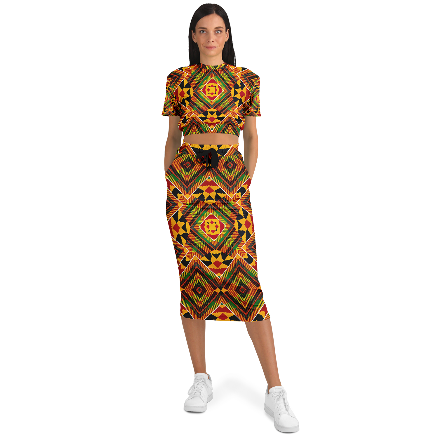Women's Fashion Cropped Short Sleeve Sweatshirt and Long Pocket Skirt Set