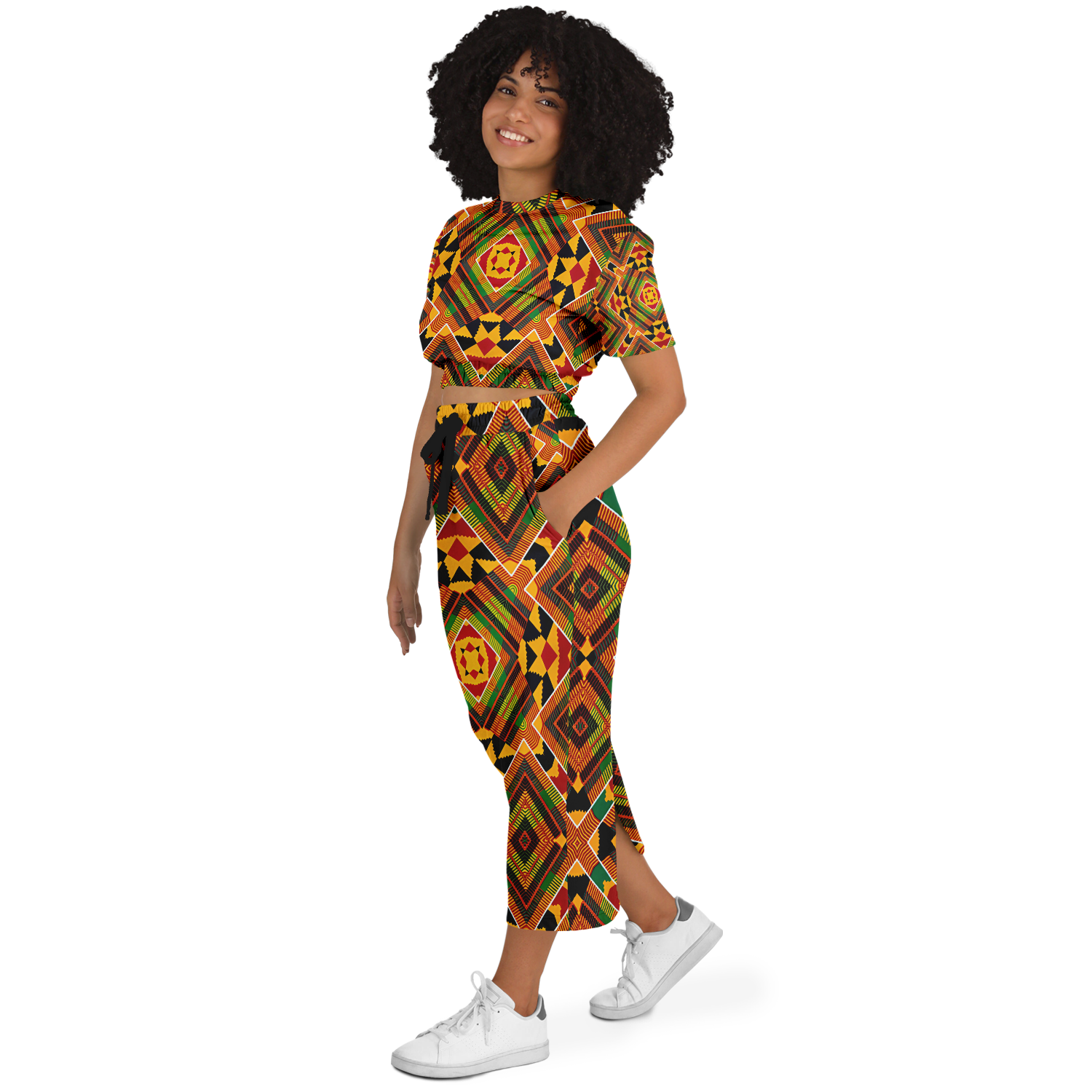 This two-piece set is made with a premium fabric blend that will make you look and feel great. The cropped short sleeve top features an elastic waistband so it’s comfortable to wear without any worries. The matching skirt has a drawstring closure and two side pockets making it ideal if you’re looking for added practicality.