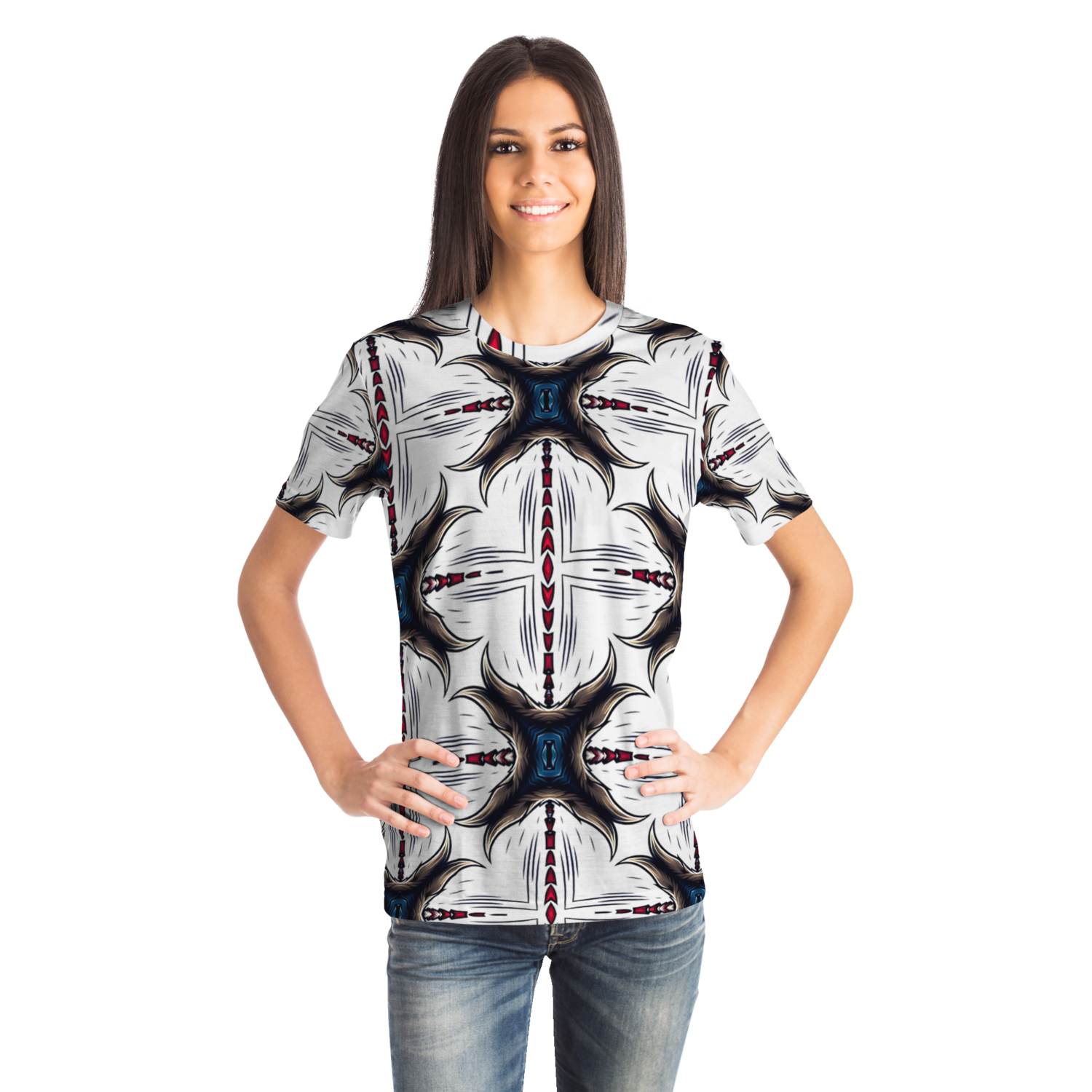 Featuring a crew neck, short sleeves, and a premium 100% polyester fabric with a cotton handfeel, and high definition printing that won't fade after washing.