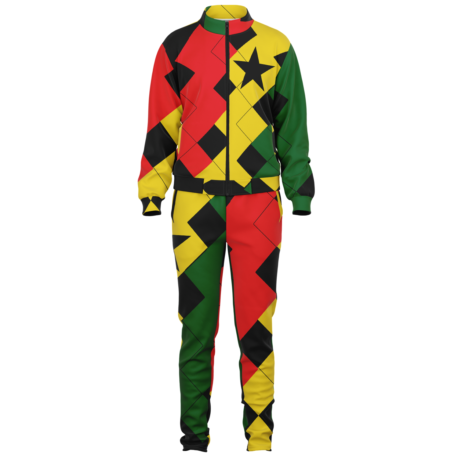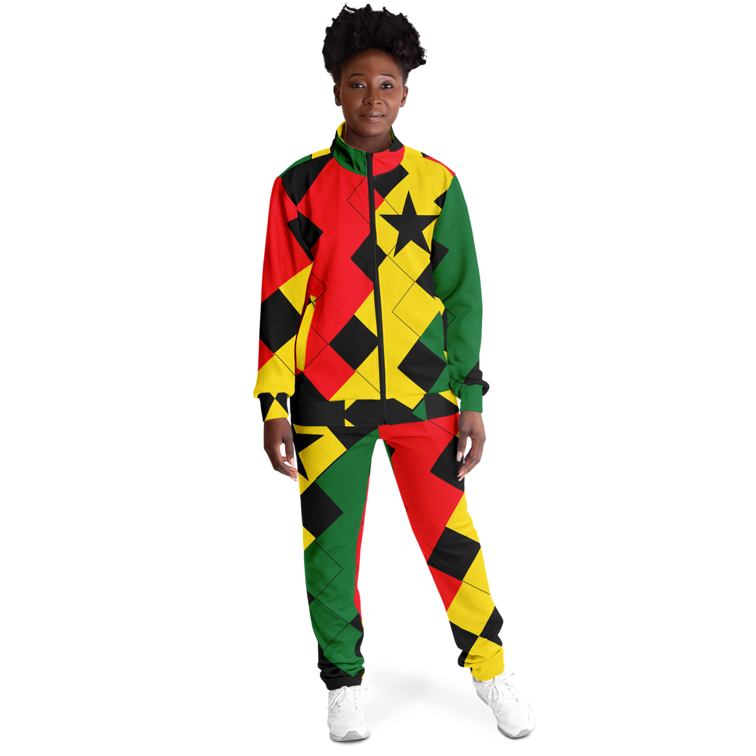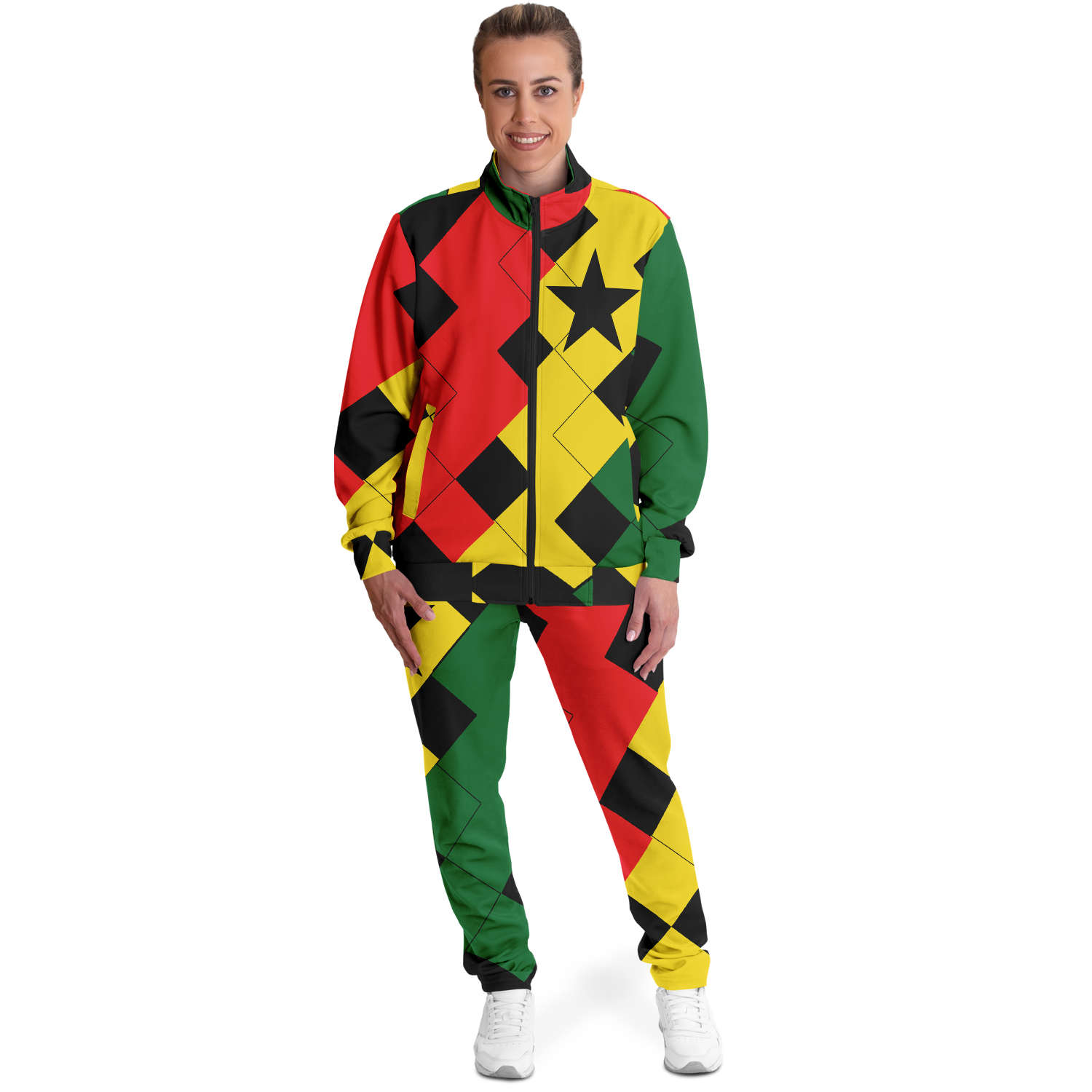 Women's Red Yellow Green and Black Stars Track Jacket and Pants