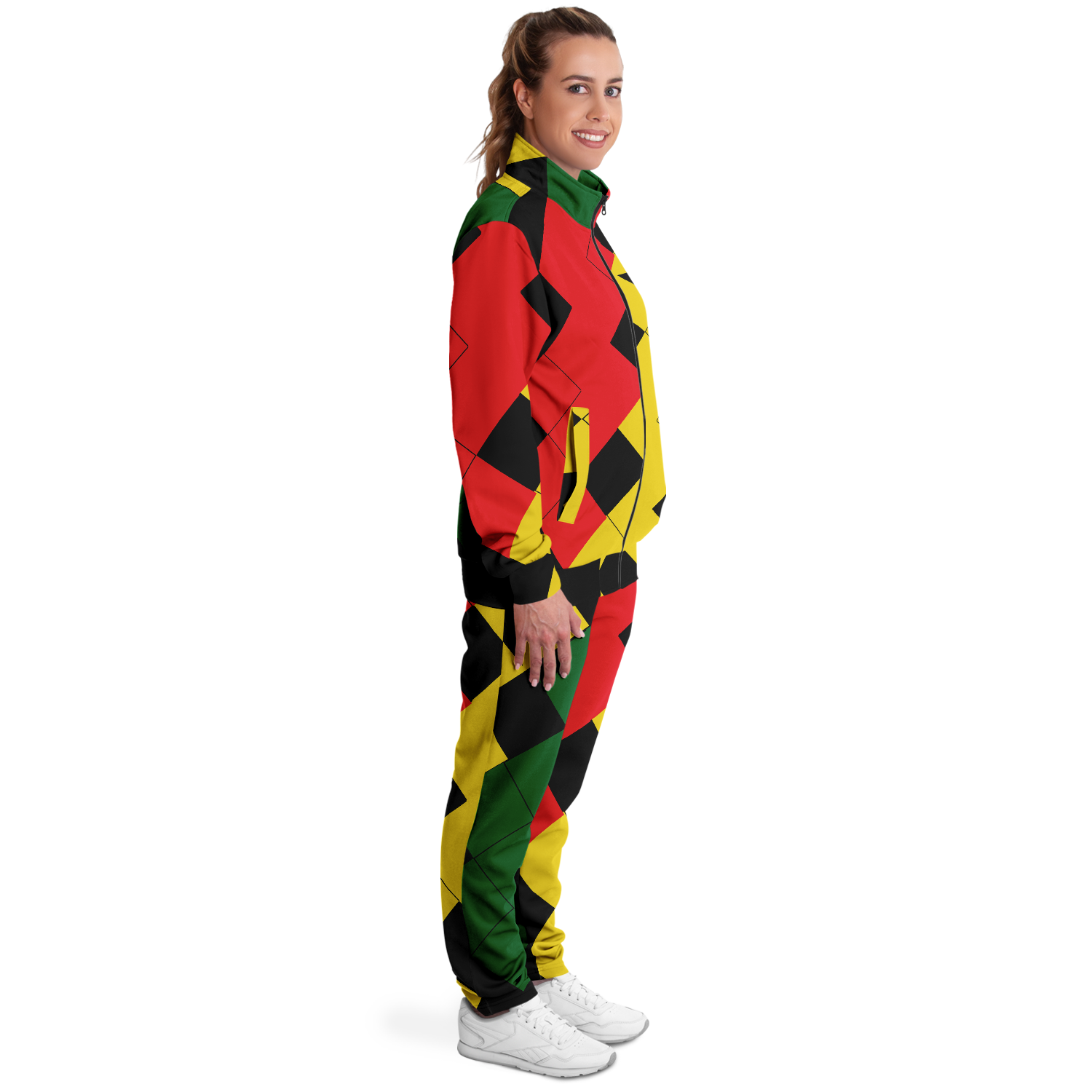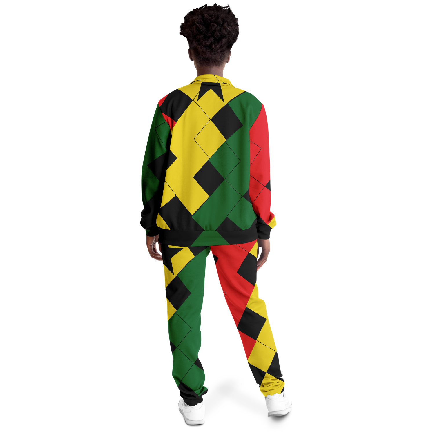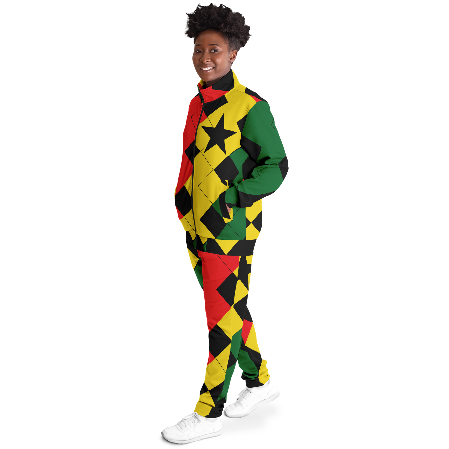 Women's Red Yellow Green and Black Stars Track Jacket and Pants