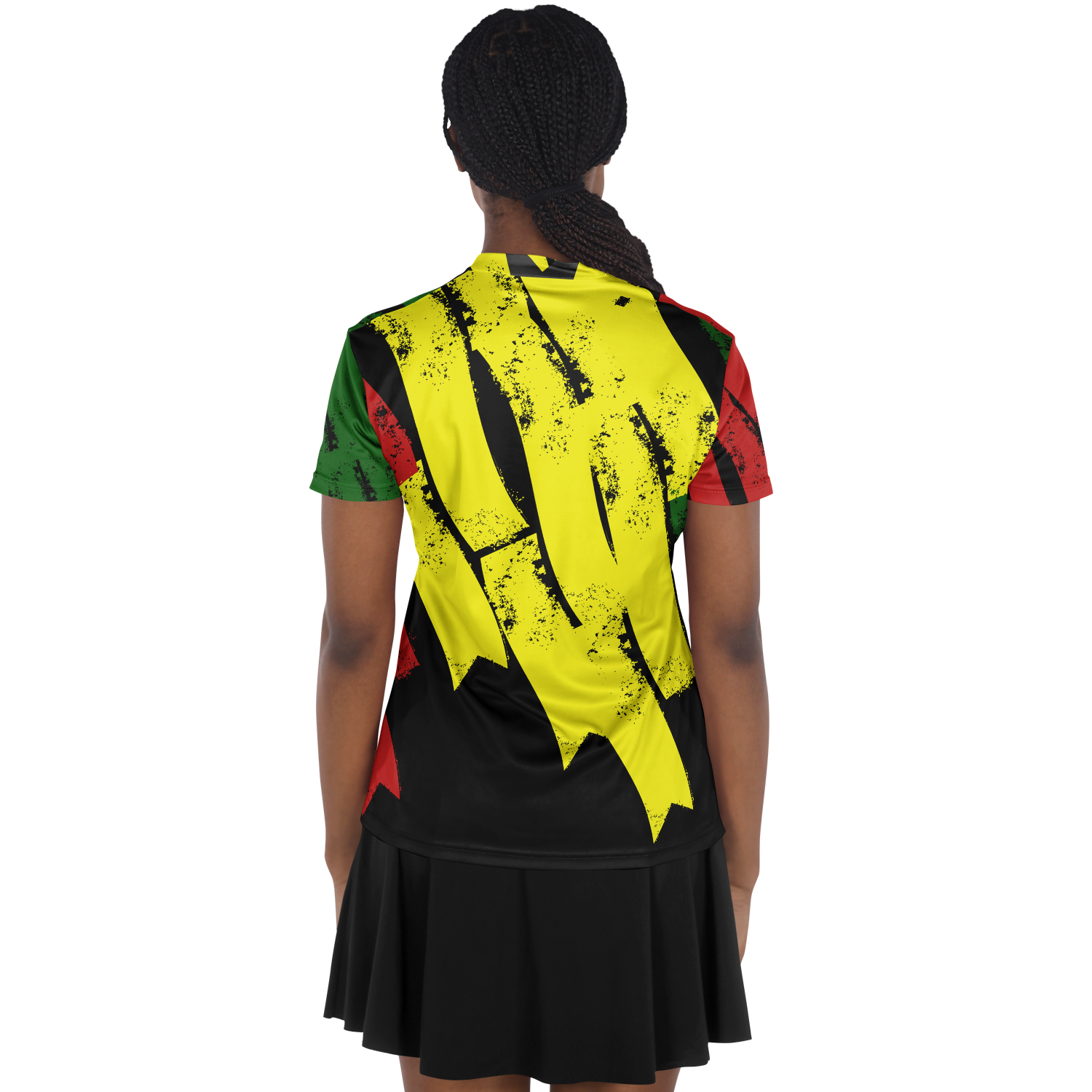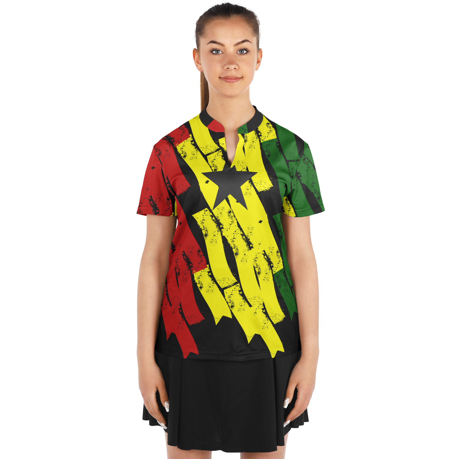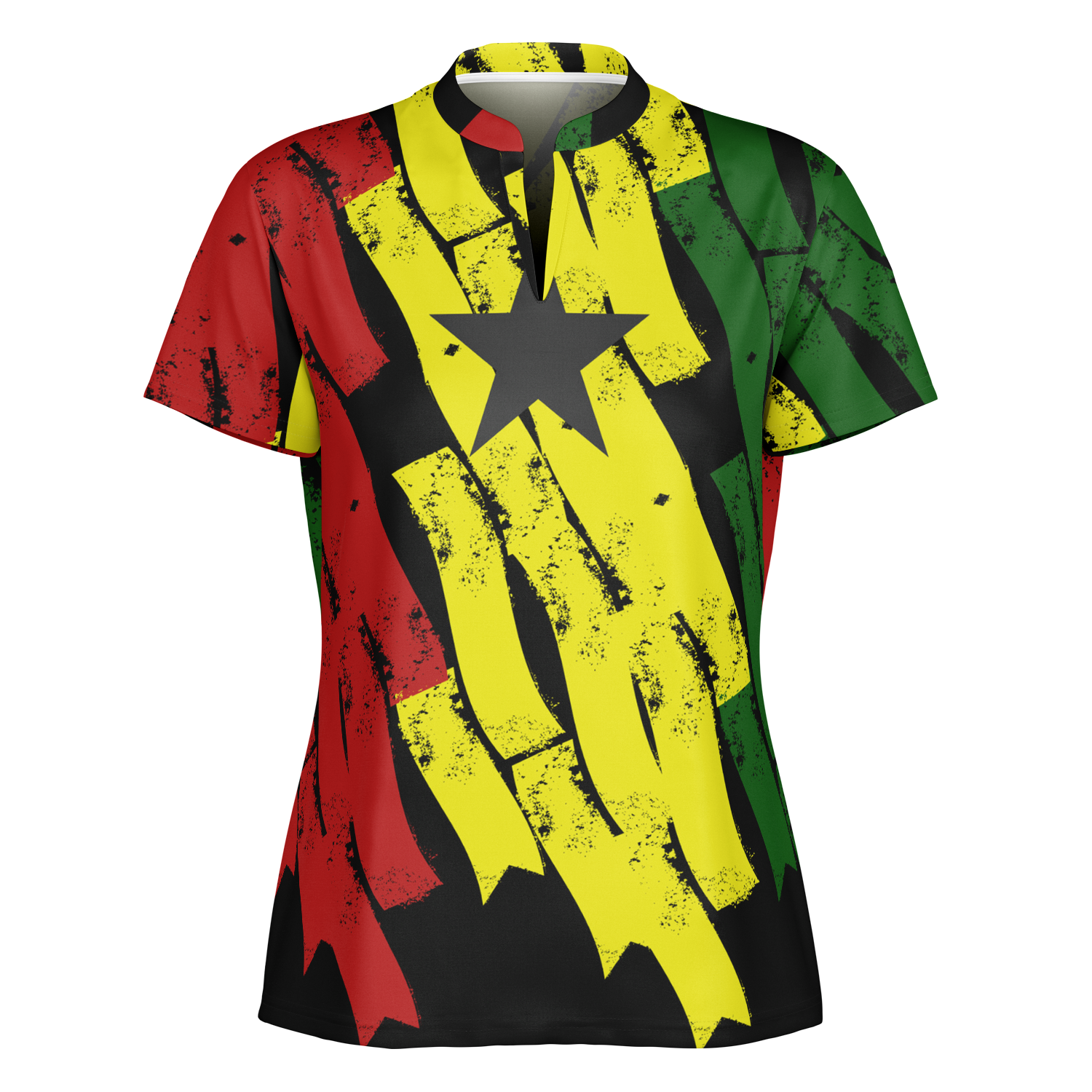 Women's Red Yellow Green Black Stars Polyester Stand Up Collar Polo Shirt
