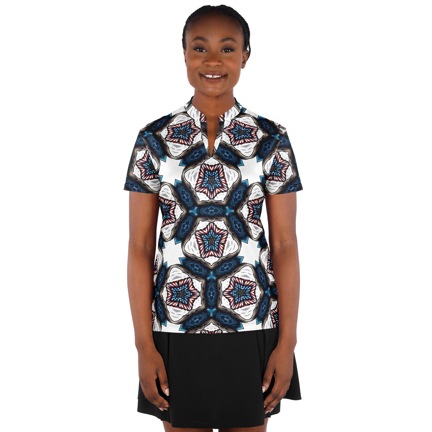 Experience style, comfort, and sustainability with our Women's Stand Up Collar Polo Shirt. Made from 100% recycled polyester, it offers a comfortable fit and excellent moisture management. Its breathability, durability, UPF 50+ protection, easy wear design, and inclusive sizing make it a wardrobe essential.