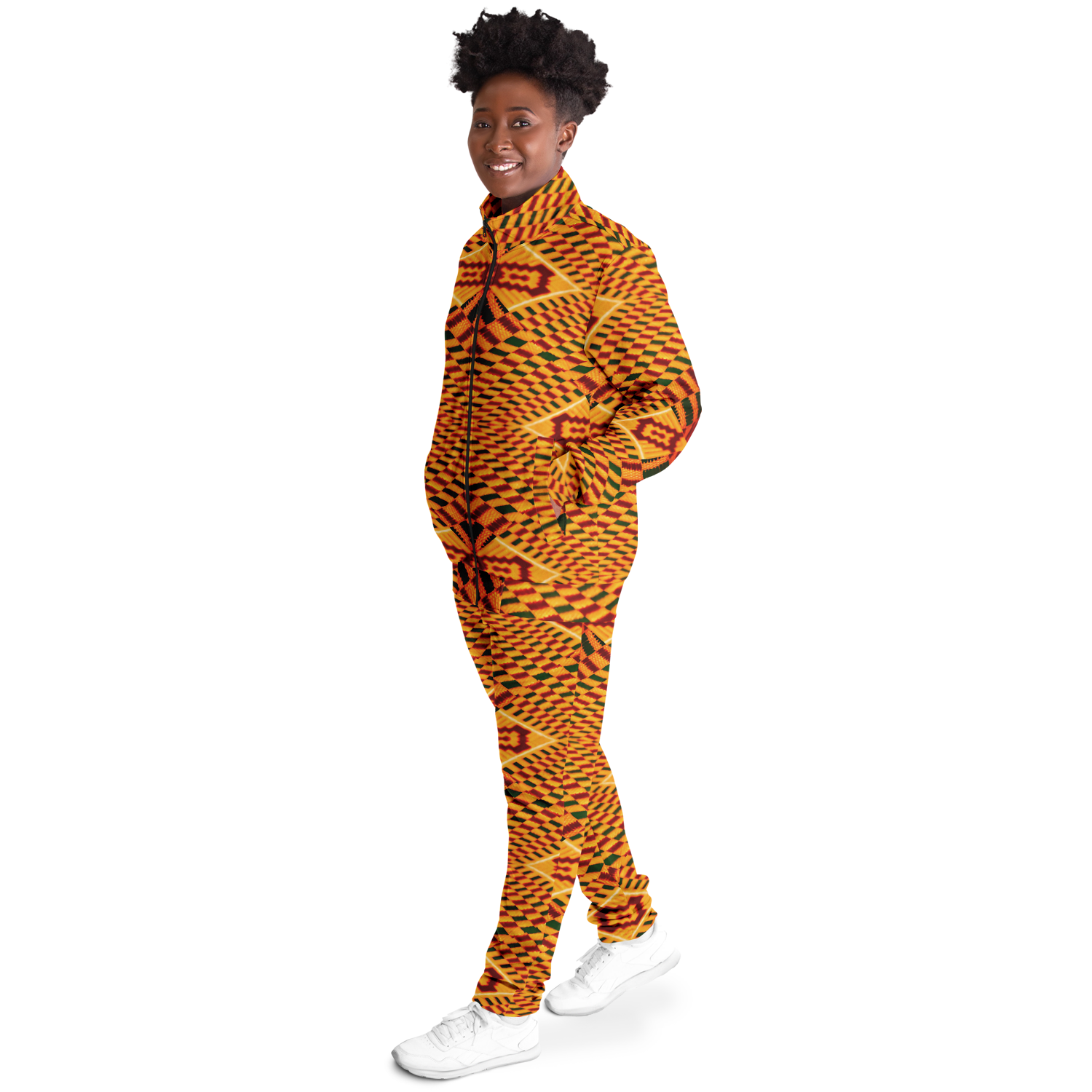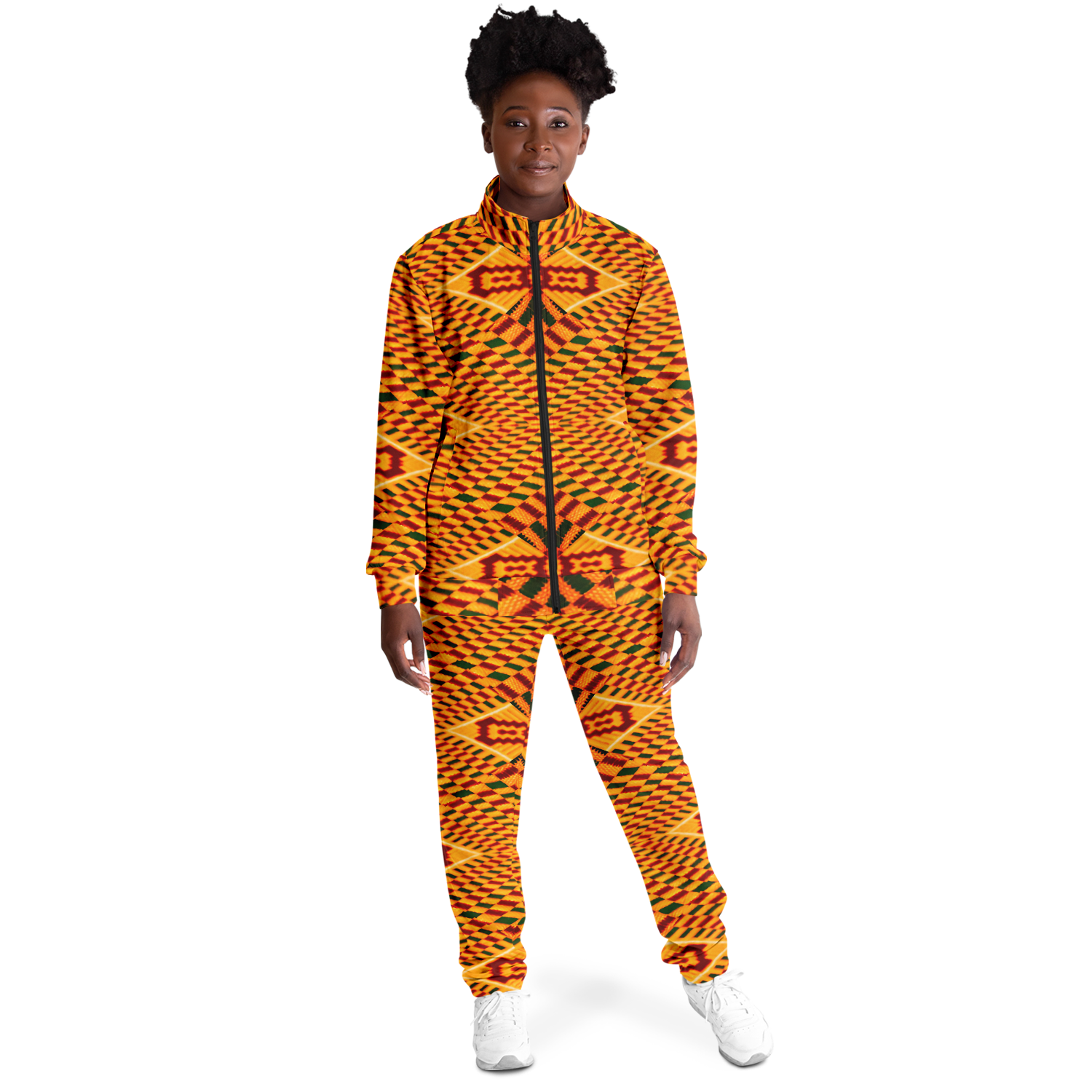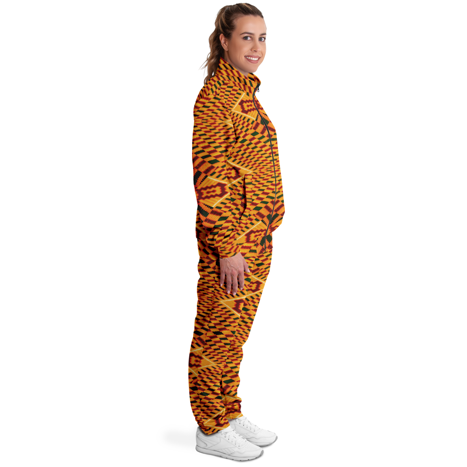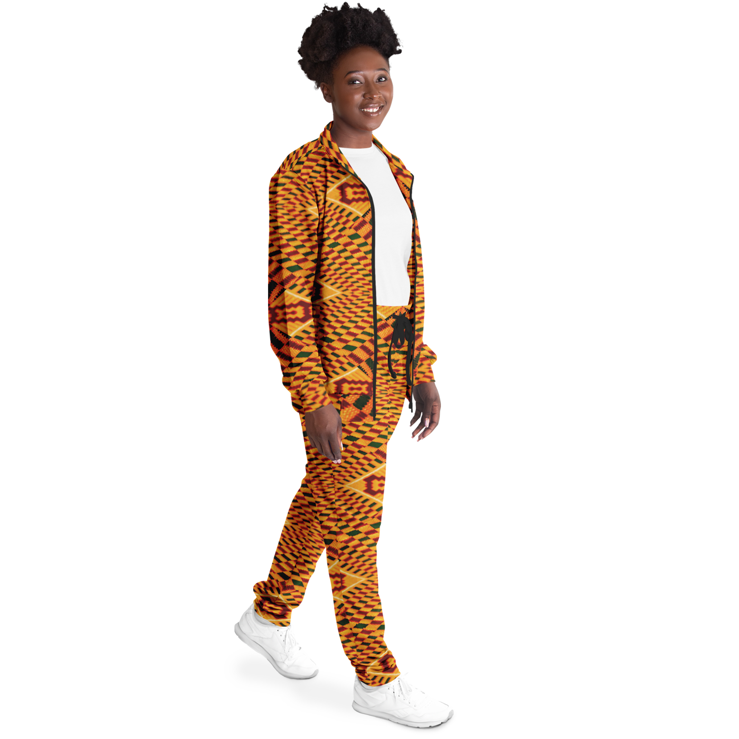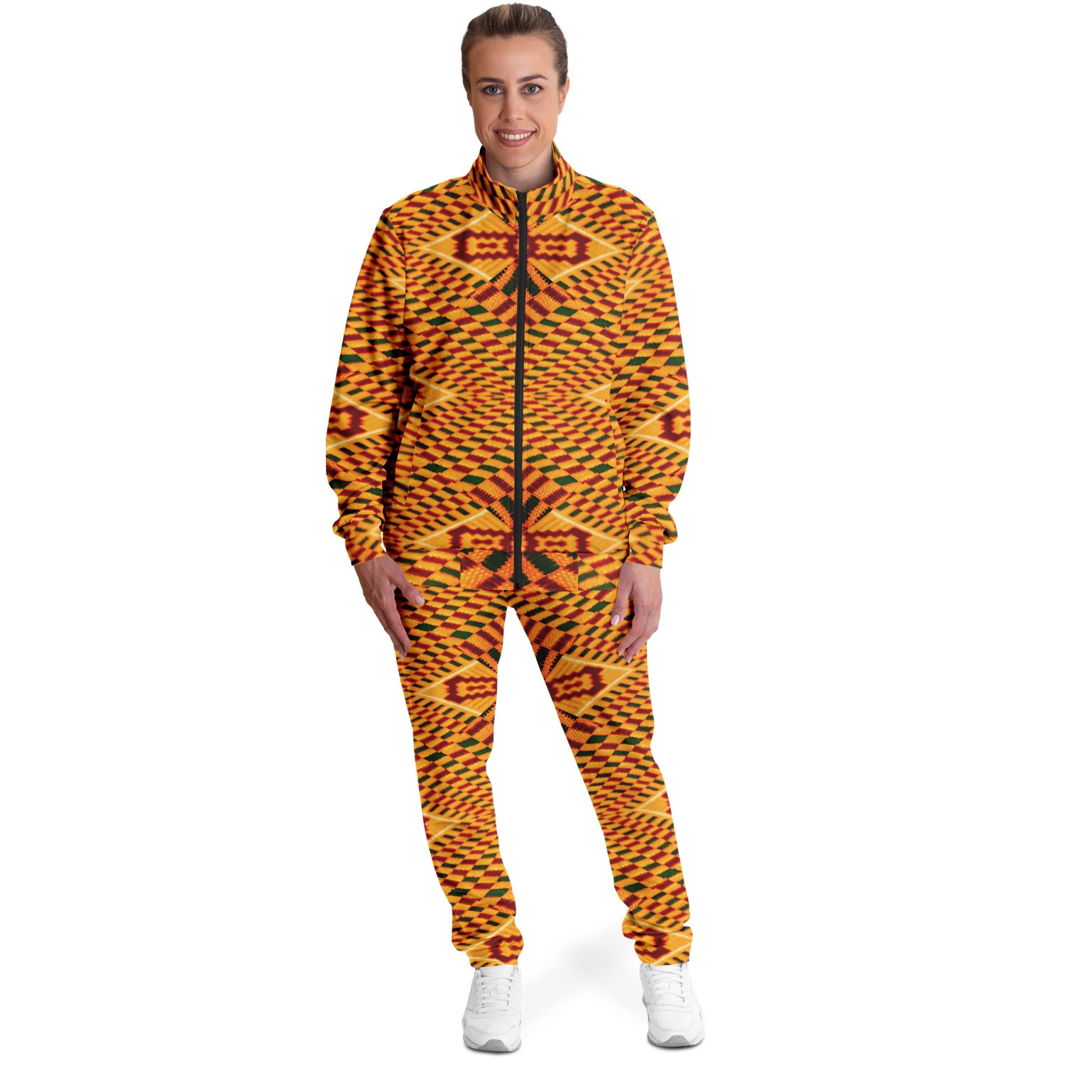 The smooth, tight-knit surface of the fabric ensures vibrant, detailed prints and colors. The tracksuit is as striking as it is comfortable, with a soft interior lining that feels great against the skin.