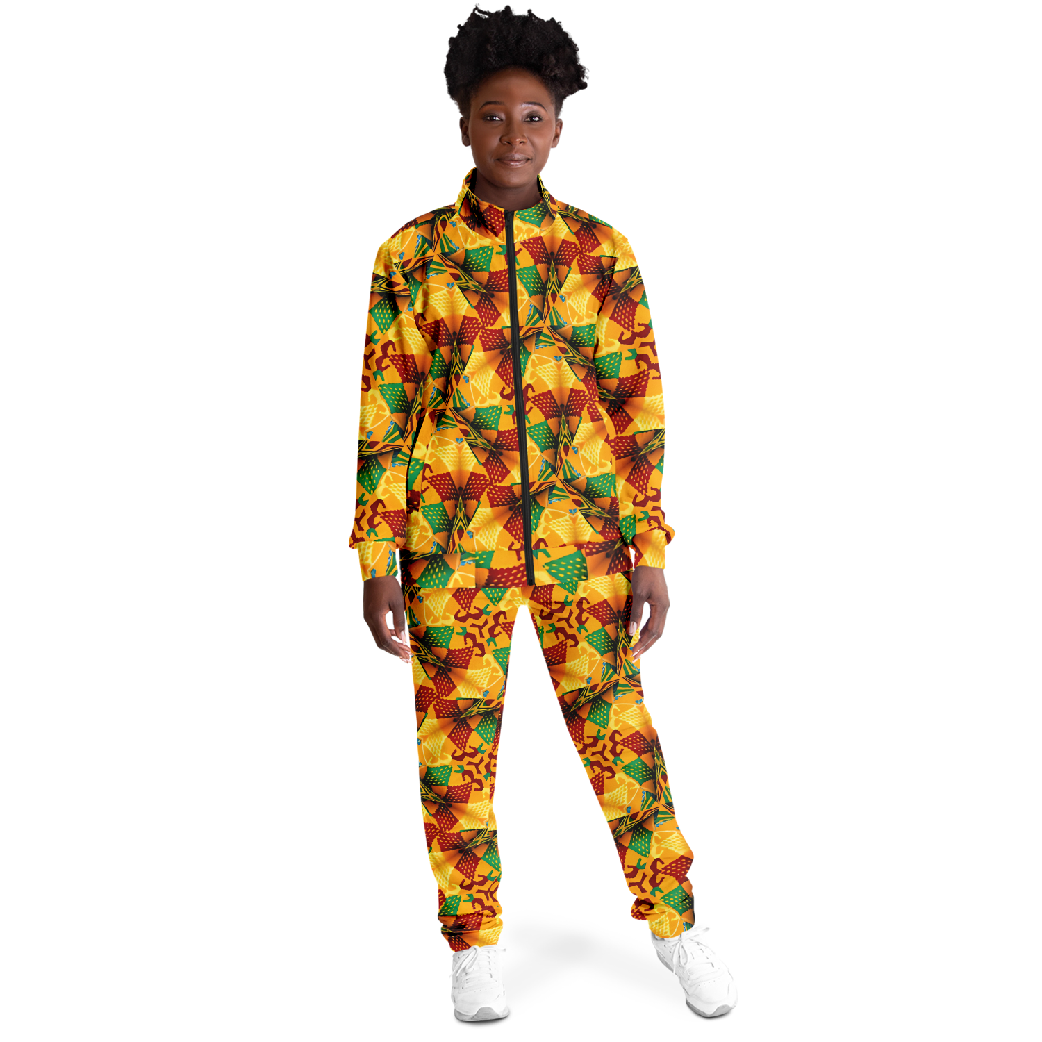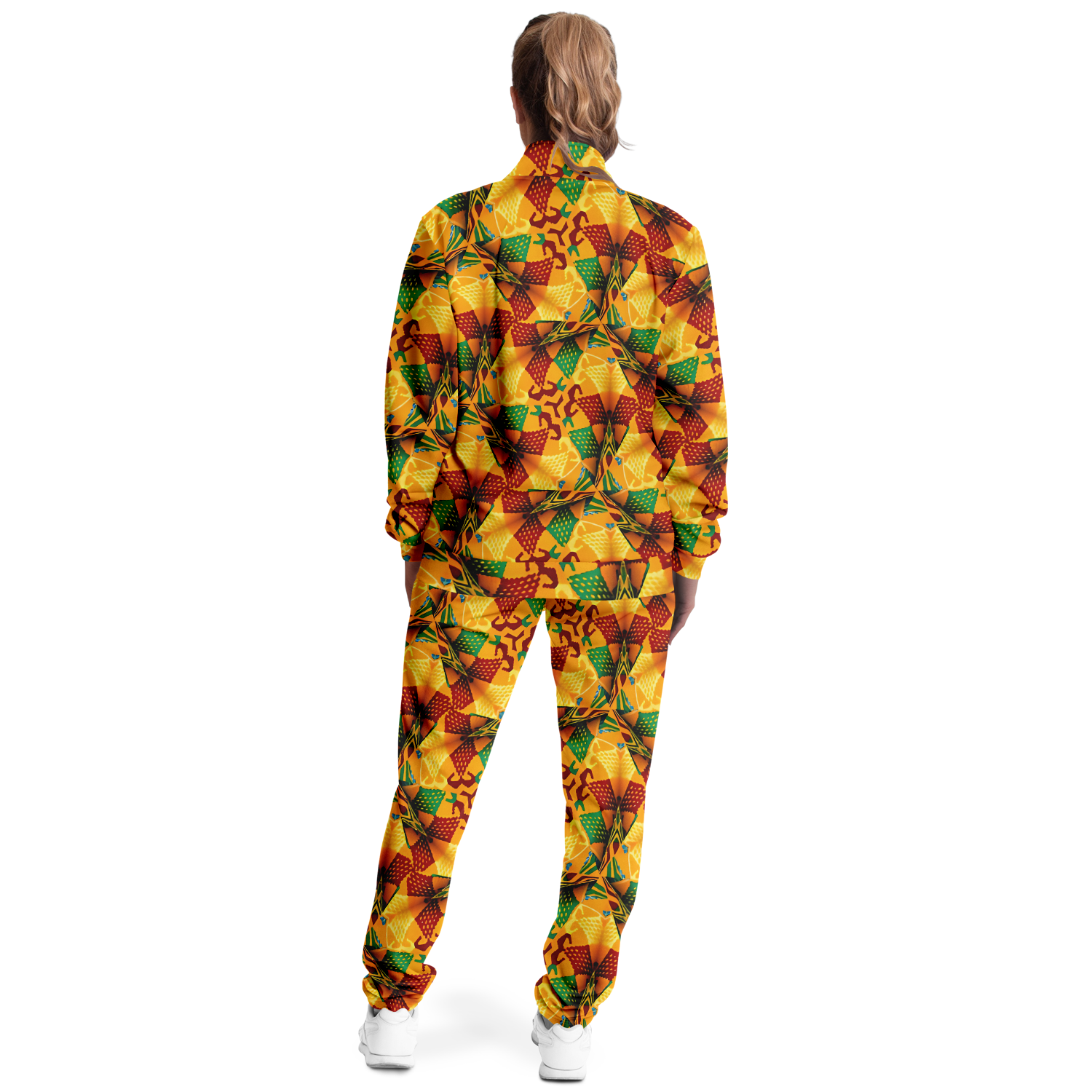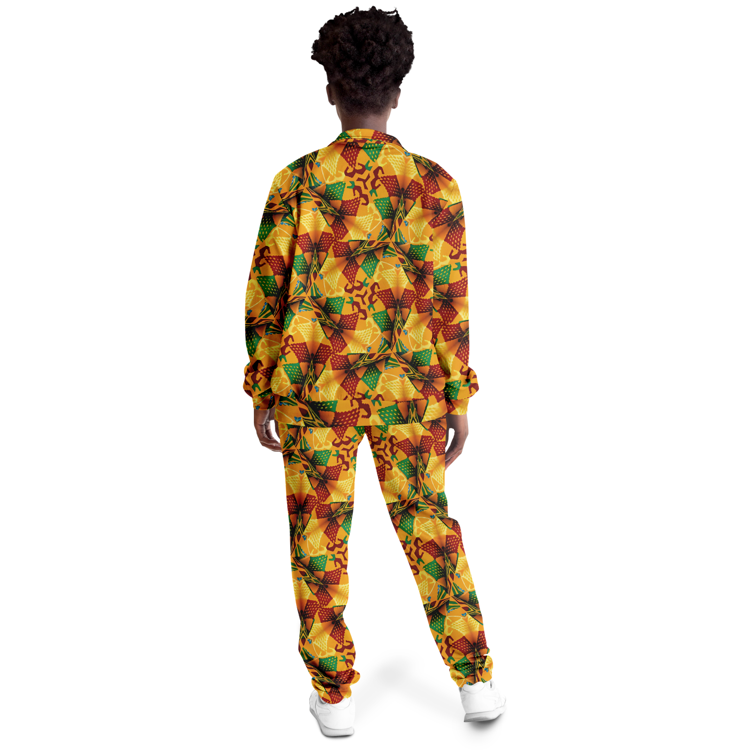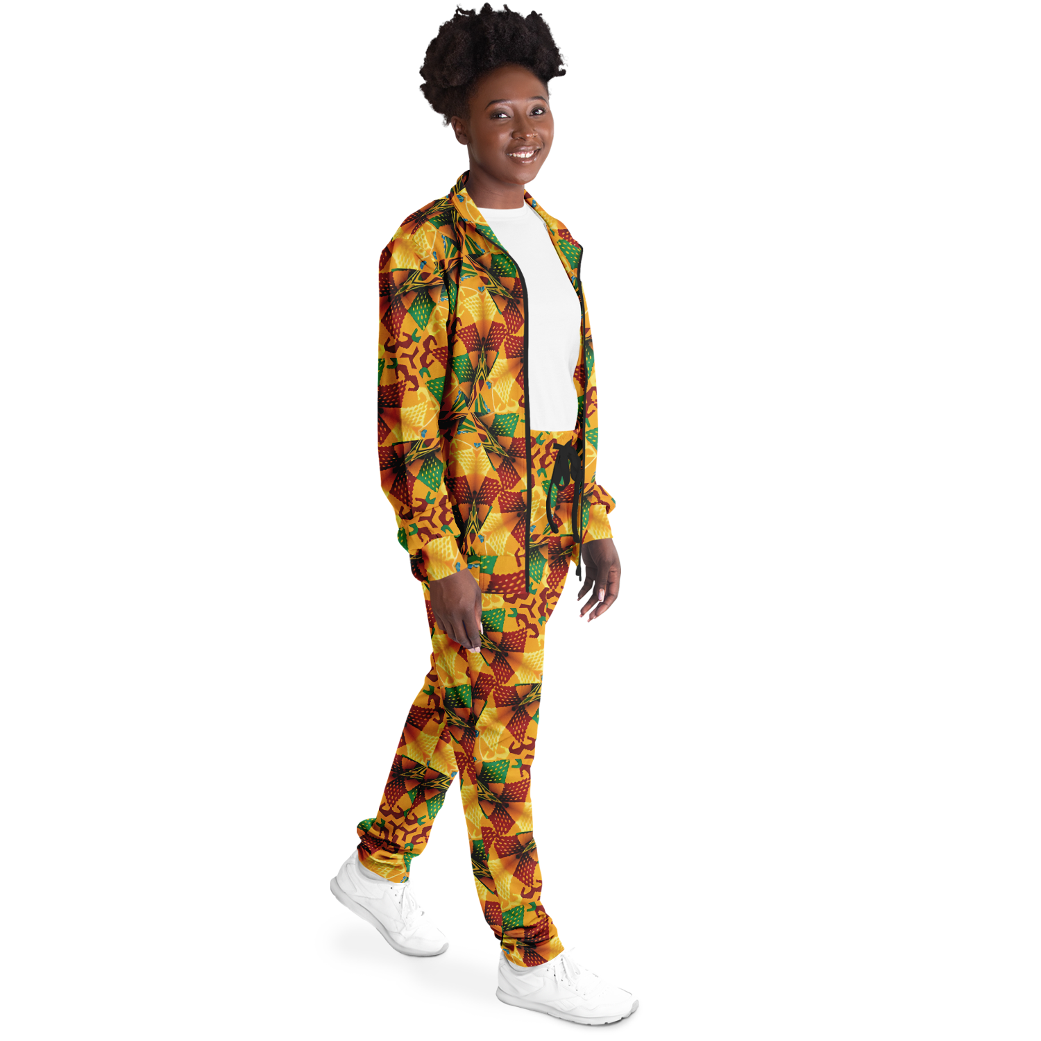 The smooth, tight-knit surface of the fabric ensures vibrant, detailed prints and colors. The tracksuit is as striking as it is comfortable, with a soft interior lining that feels great against the skin.
