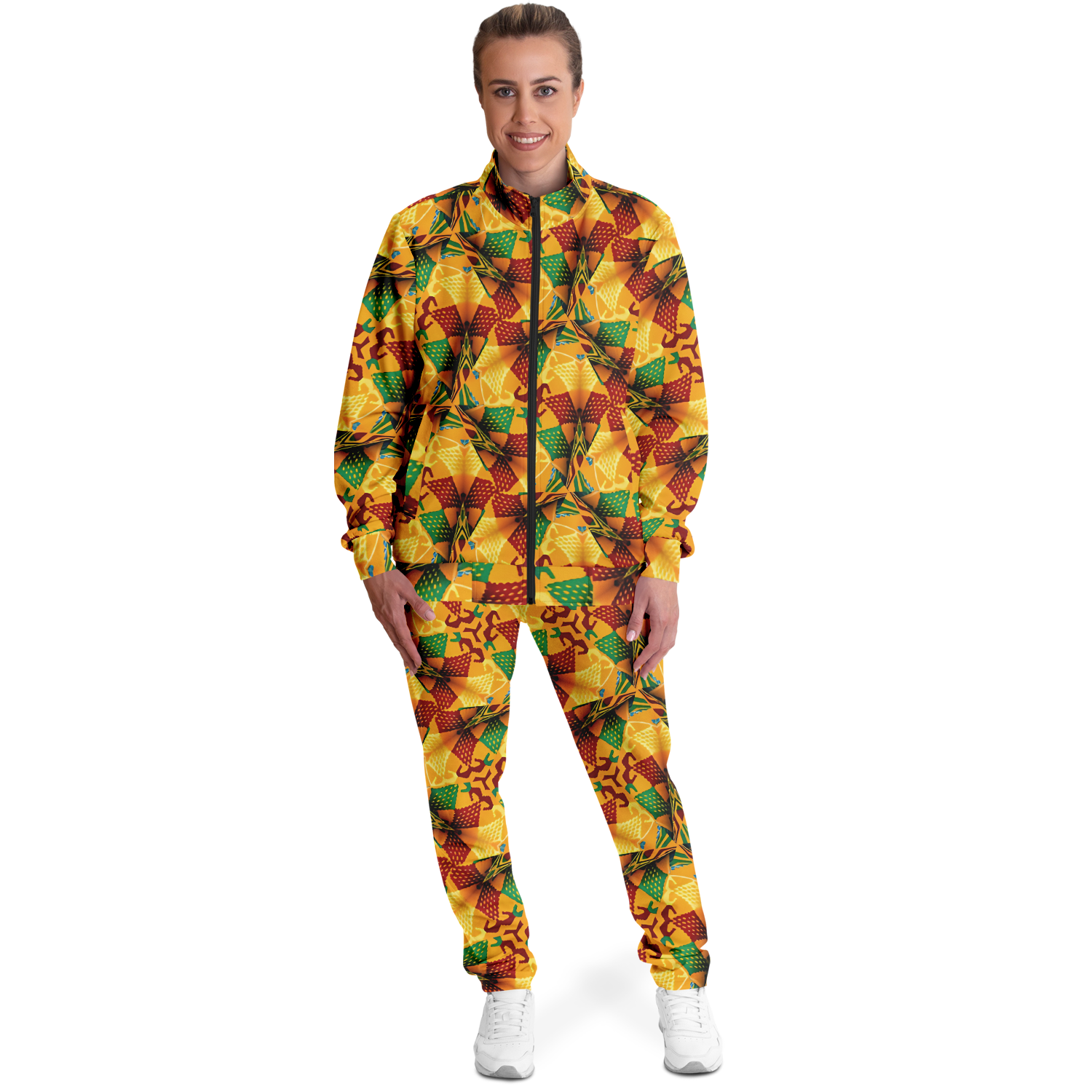 Introducing our sustainable tracksuit, a stylish blend of comfort, durability, and eco-conscious design. Made from 95% recycled polyester and 5% spandex, this set includes a track jacket and pants, delivering a unified look for your active lifestyle.