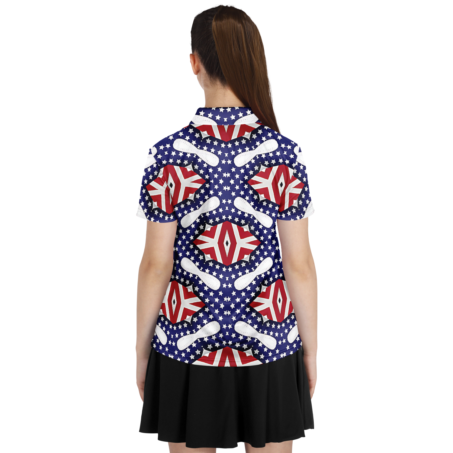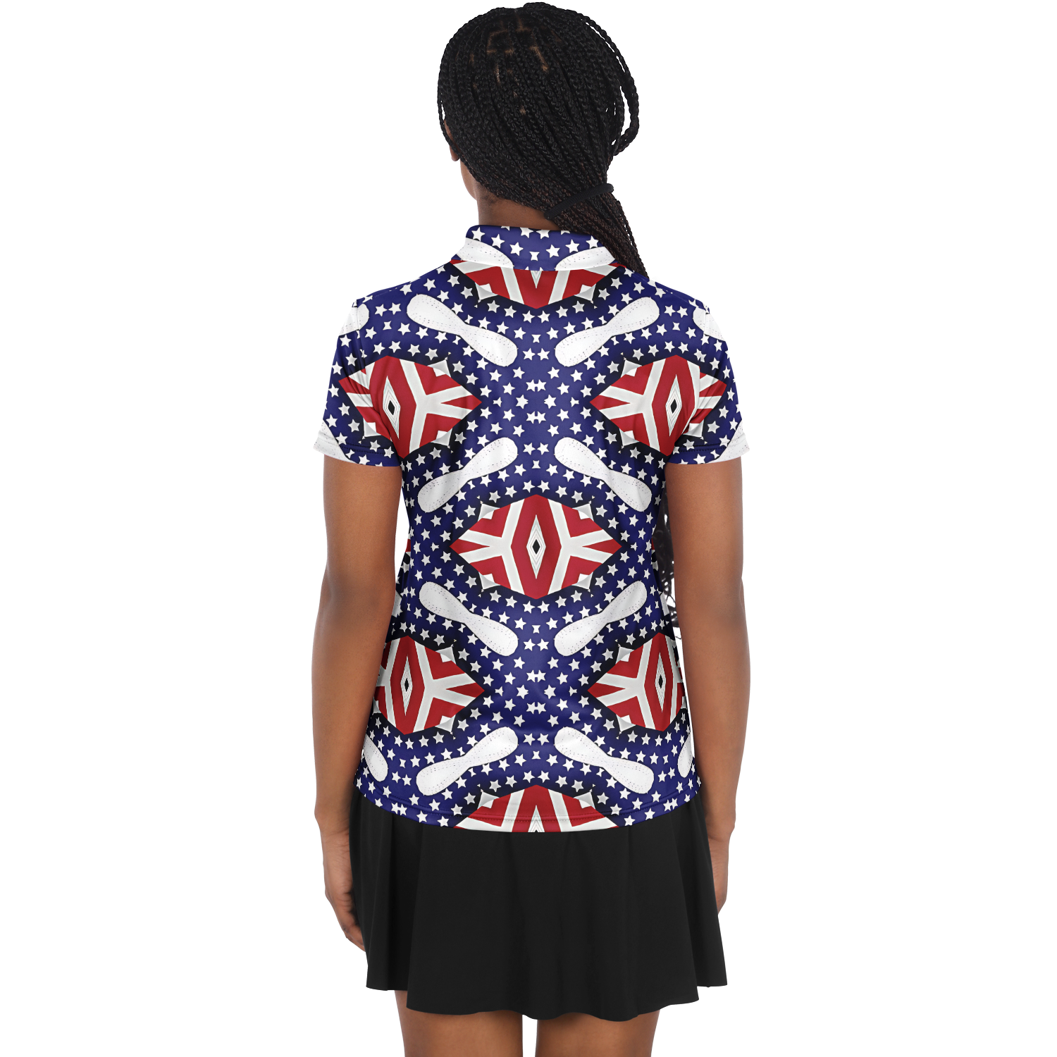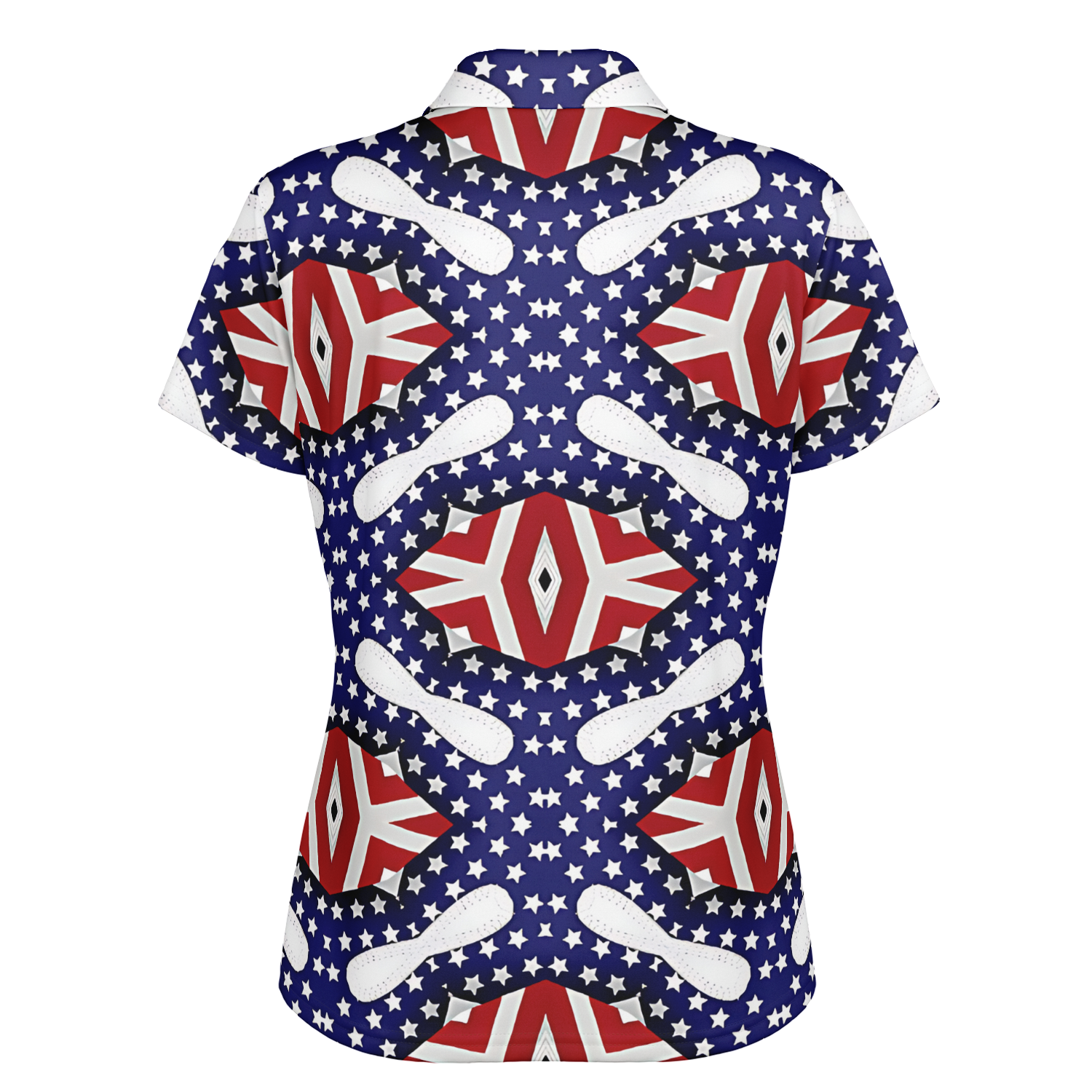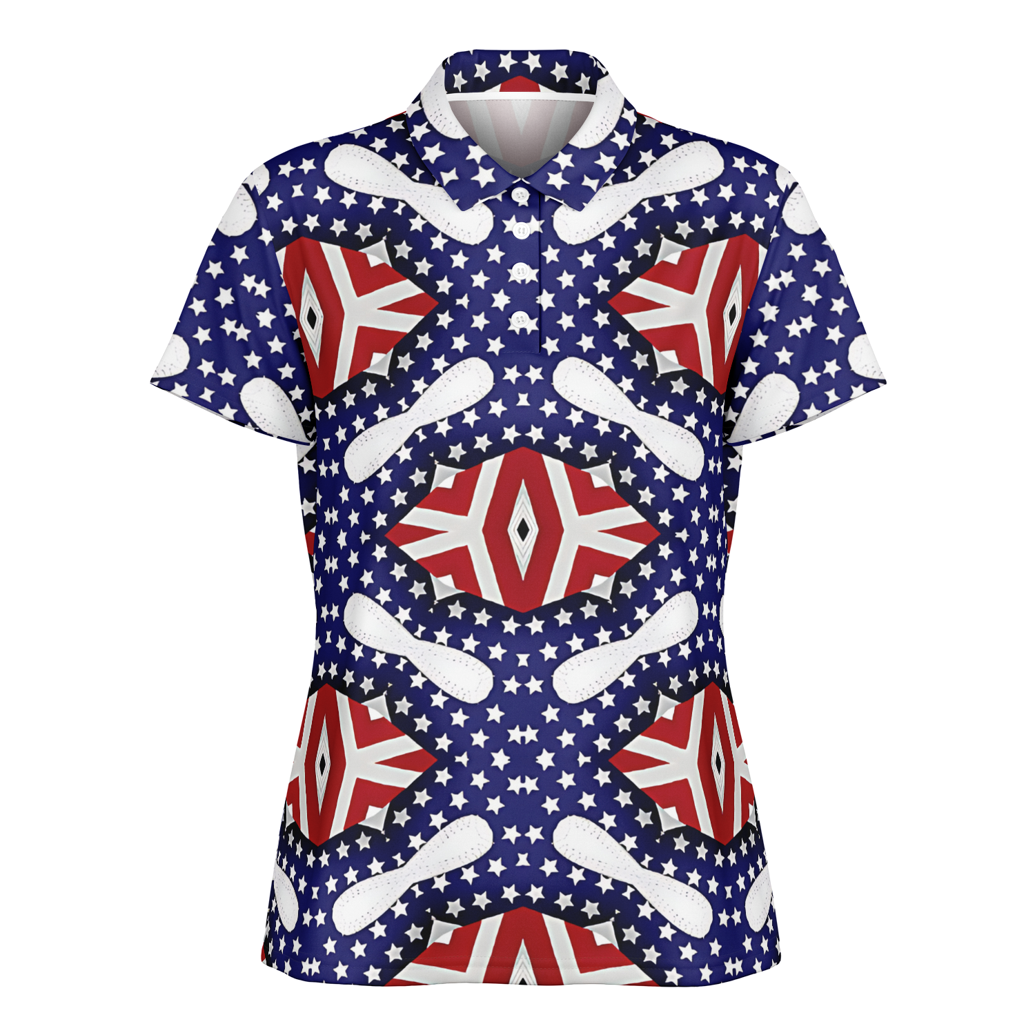 Women's White Blue & Red Patterned Polo Shirt Polo Shirt
