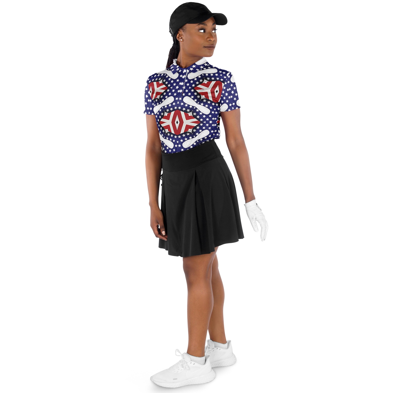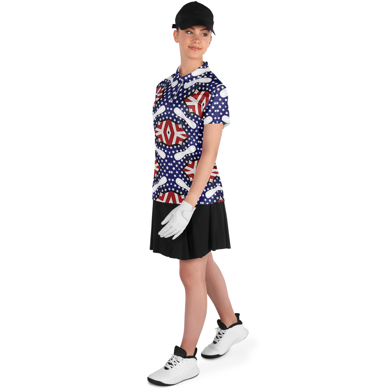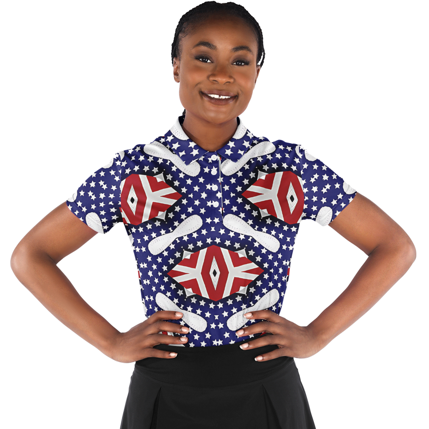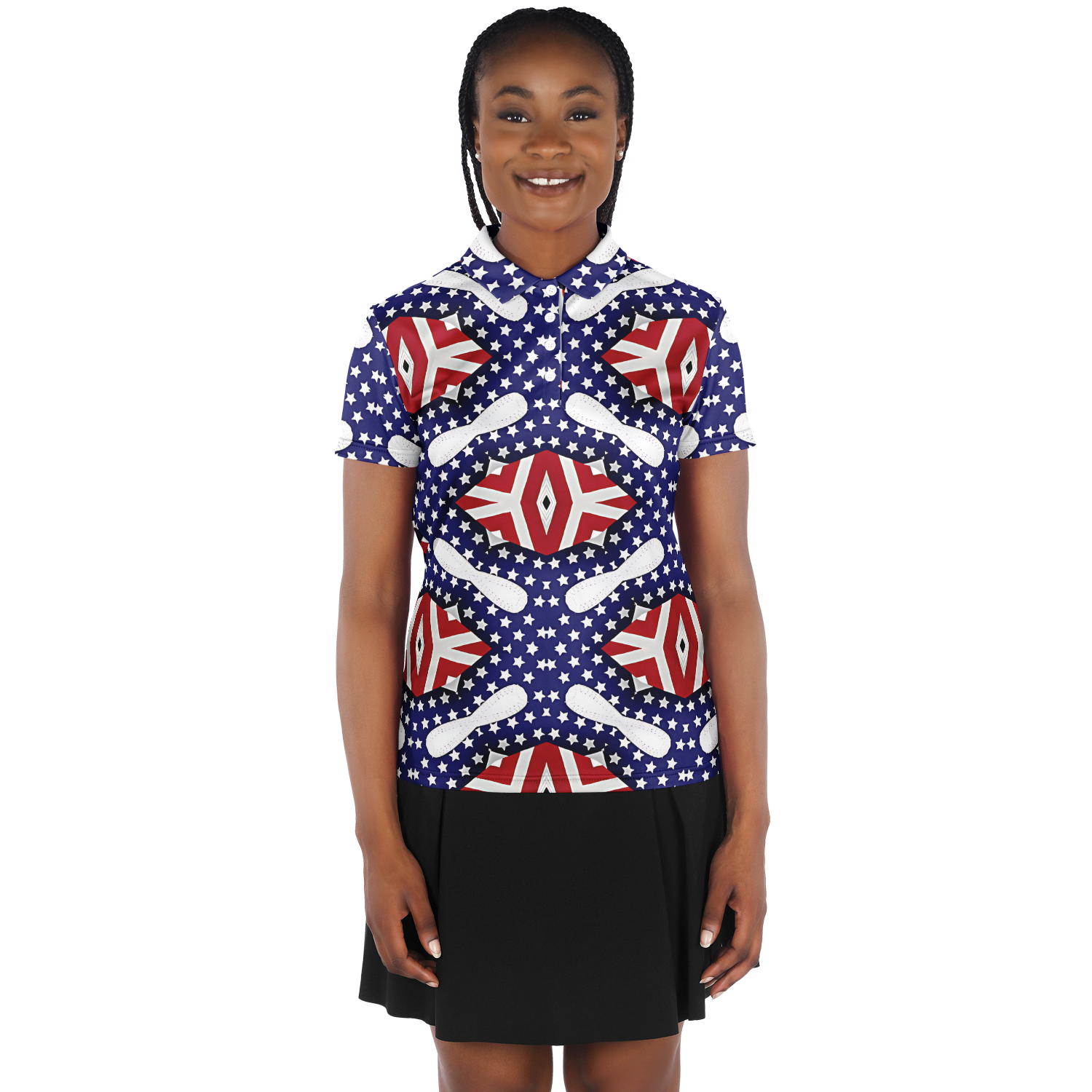 Women's White Blue & Red Patterned Polo Shirt Polo Shirt